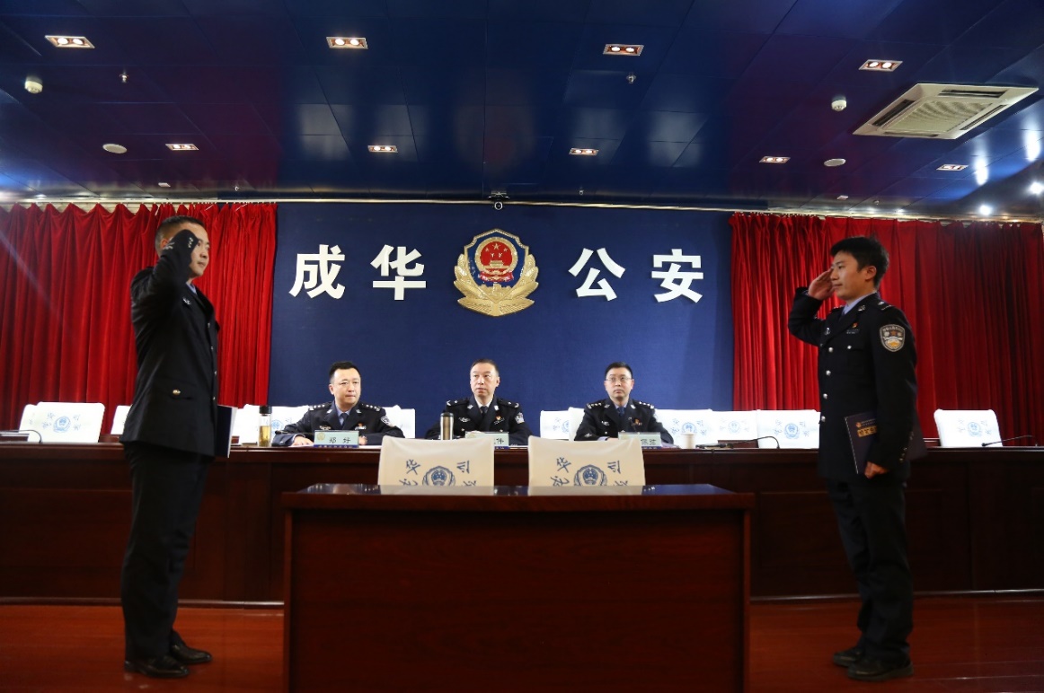 2024年1月4日上午,在第四個(gè)中國人民警察節(jié)來臨之際,成都市公安局成華區(qū)分局隆重舉行青年民警優(yōu)師帶徒拜師儀式。