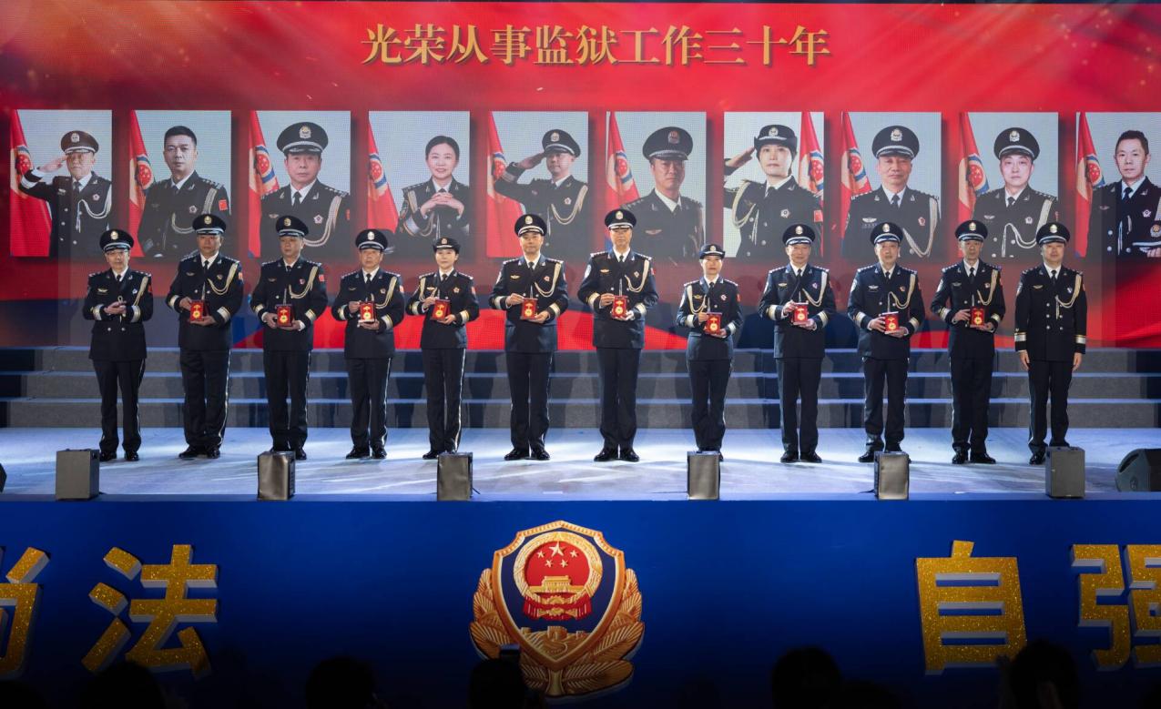 監(jiān)獄事業(yè)的發(fā)展,離不開一代又一代監(jiān)獄民警的忠誠奉獻、無悔付出。在今天這個特殊的日子里,全省監(jiān)獄為5452位從事監(jiān)獄工作30年的民警頒發(fā)紀念徽標。省司法廳黨委委員、省監(jiān)獄管理局黨委書記、局長陳志林,省監(jiān)獄管理局黨委副書記、政委曾永忠在活動現(xiàn)場為10位從事監(jiān)獄工作三十年民警代表頒發(fā)紀念徽標。