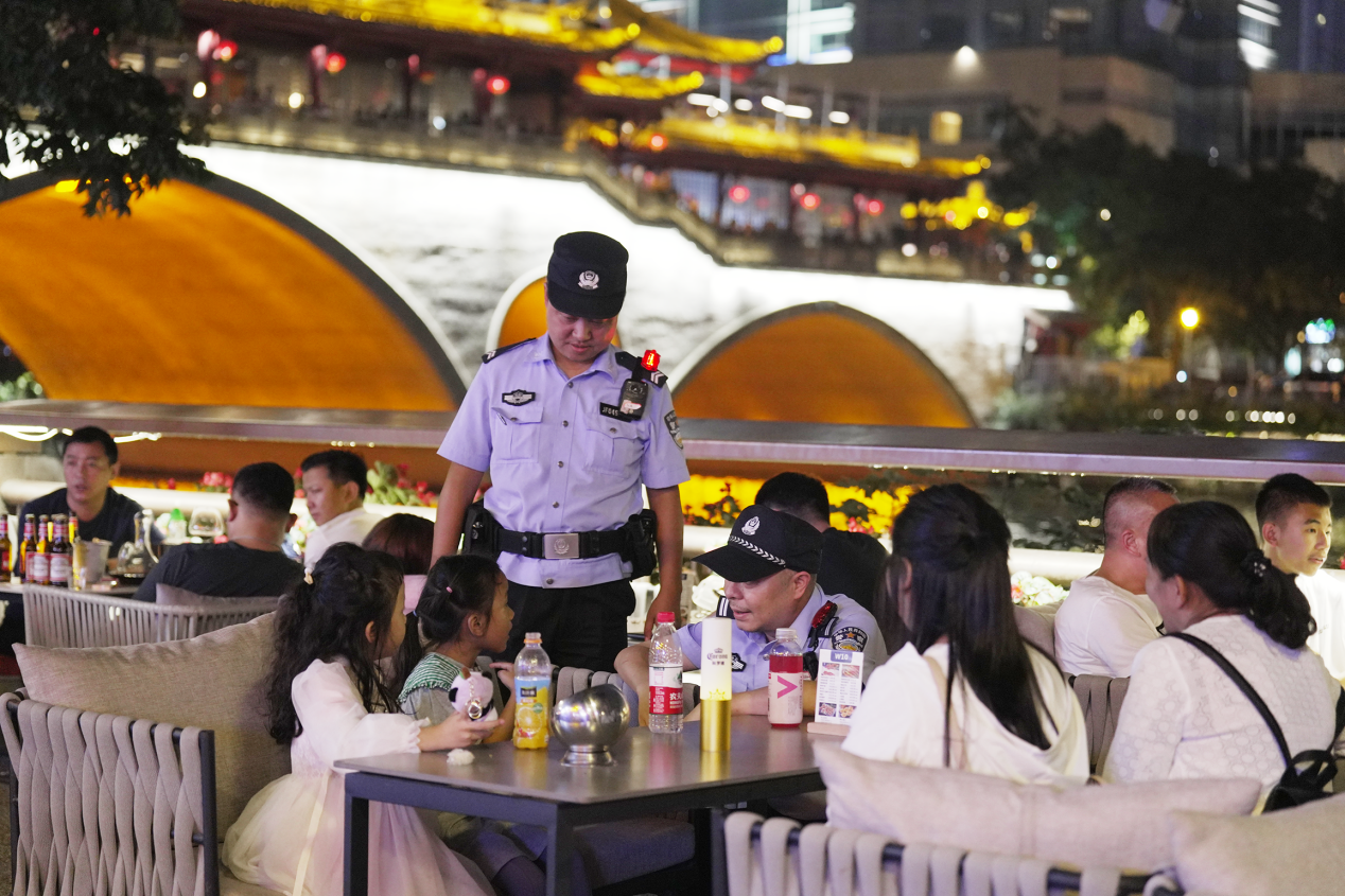 “無論是外地游客還是本地居民,很多人都喜歡在望江河邊吹吹風(fēng)、泡泡吧?!苯z管路的“管段”民警段軍2009年從交警分局調(diào)到望江路派出所后,15年來一直負(fù)責(zé)老馬路社區(qū)的相關(guān)警務(wù)工作。段軍說,每逢節(jié)假日來絲管路放松的人就特別多,所上也會投入更多精力在“酒吧街”和臨近的望江公園、川大博物館等景點及區(qū)域。從節(jié)前的消防安全檢查、治安隱患排查,到節(jié)日期間的巡邏防控、安全守護(hù),大家一絲不茍、全力堅守。