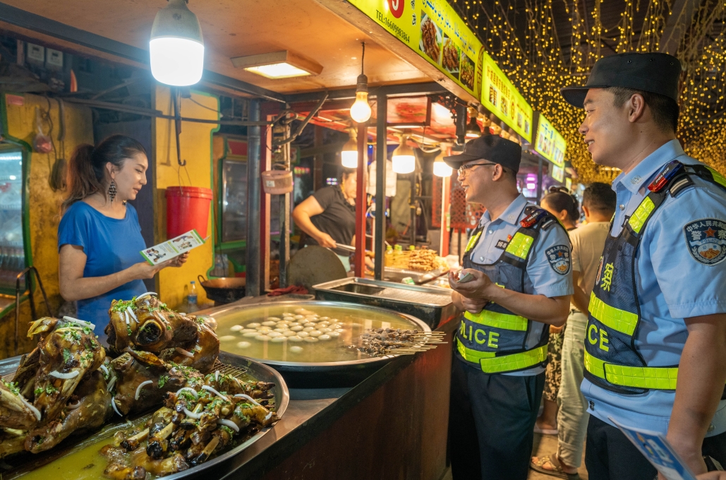 天氣漸熱,夏夜?jié)u長,城市的“煙火氣”在“夜經(jīng)濟”的復蘇繁榮中愈發(fā)濃郁。7月8日,新疆葉城縣公安局聚焦轄區(qū)“夜經(jīng)濟”發(fā)展的重要時段與集中區(qū)域,構(gòu)建起全覆蓋、立體化的巡防體系。針對夏夜經(jīng)濟特點,圍繞轄區(qū)夜市、公園、娛樂場所、商圈等重點區(qū)域,采用“車巡+步巡”相結(jié)合的立體化巡邏模式,加強夜間群眾休閑娛樂高峰時段人員聚集場所的巡防力度,為轄區(qū)群眾增添滿滿的安全感。