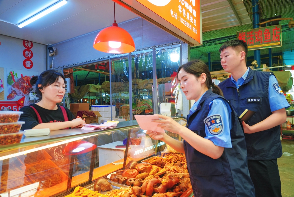 為切實(shí)守護(hù)人民群眾“菜籃子”安全,8月11日,新疆溫宿縣公安局環(huán)食藥偵大隊(duì)組織精干警力,對(duì)轄區(qū)內(nèi)重點(diǎn)菜市場(chǎng)鹵味熟食、冷凍食品、鮮活水產(chǎn)、糧油米面及新鮮蔬菜等展開(kāi)了一次全方位食品安全檢查。同時(shí),民輔警加強(qiáng)食品安全法律法規(guī)宣傳,督促商戶嚴(yán)格落實(shí)主體責(zé)任,嚴(yán)把進(jìn)貨查驗(yàn)關(guān),確保所售食品來(lái)源可溯、質(zhì)量可靠。