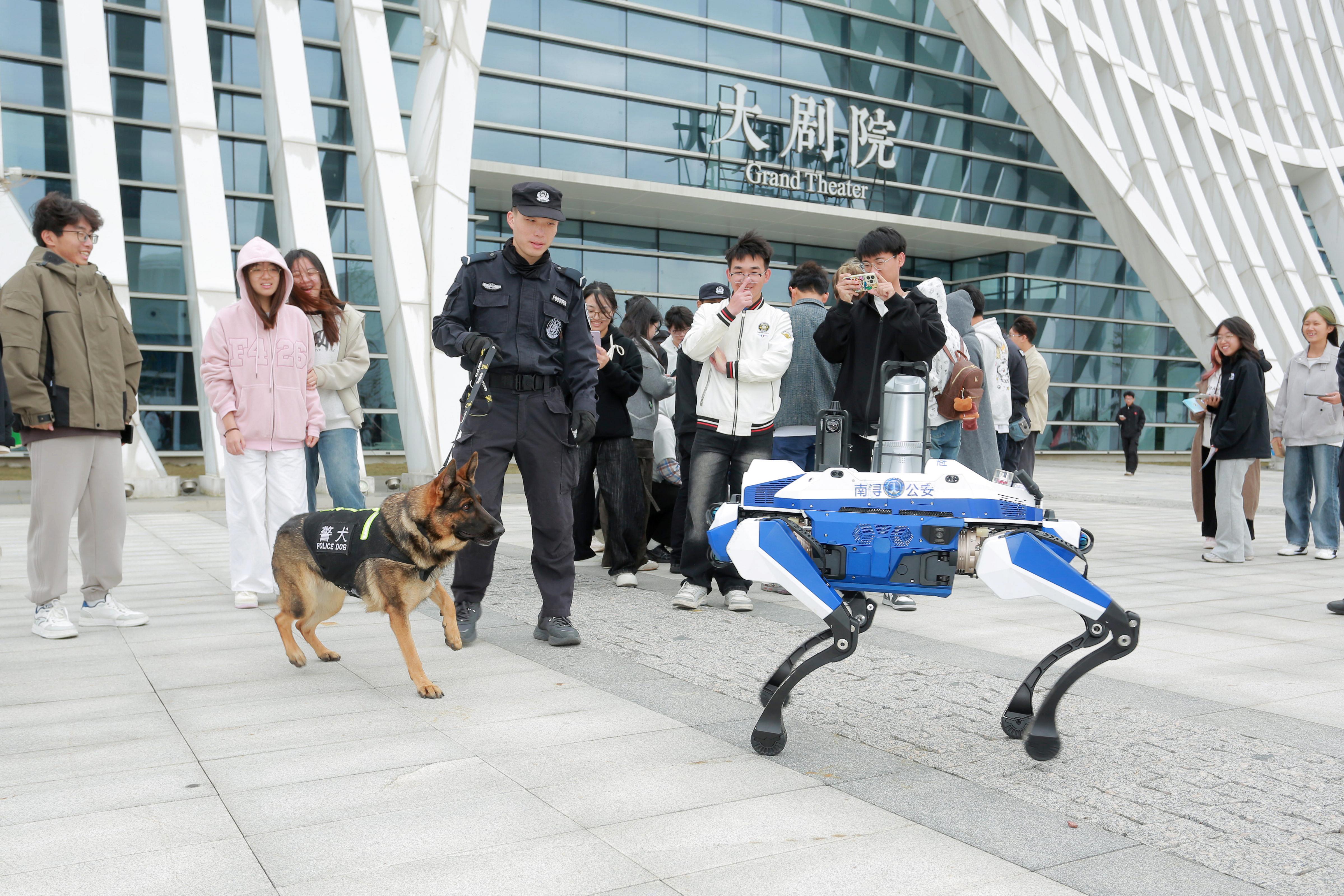 學生小王說:“第一次近距離看到緝毒犬和機器狗,感覺特別震撼!緝毒犬特別靈敏,馴導員剛把藏了模擬毒品的箱子擺好,它立馬就聞著味兒湊過去,尾巴還輕輕晃,又專業(yè)又可愛;機器狗更讓我眼前一亮,它能靈活穿梭在市集的桌椅之間,攝像頭實時傳輸畫面,還能根據(jù)指令停下來‘檢查’,科技感滿滿。”