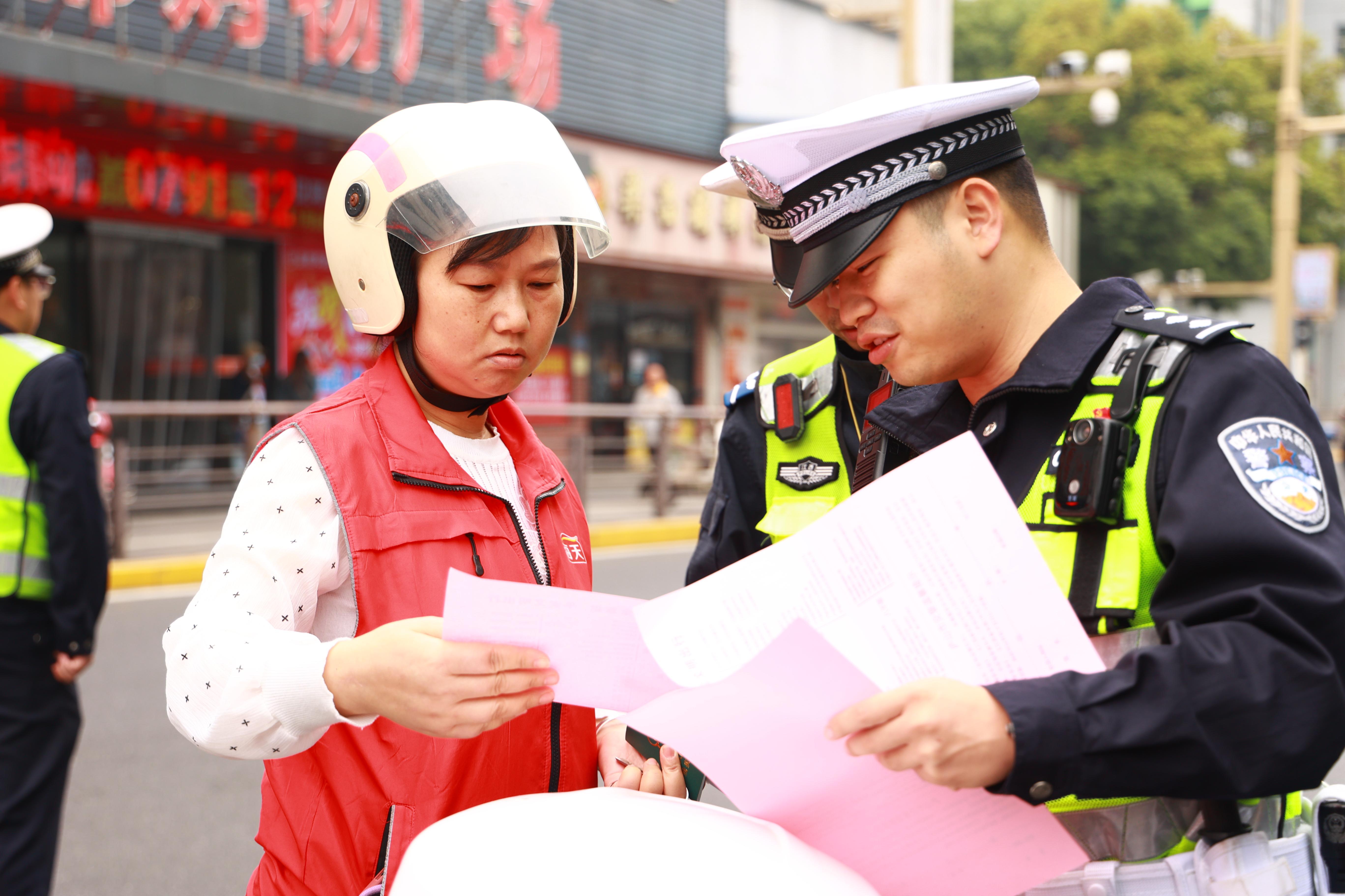 圖為11月7日,民警在人流較集中的南康大道開展“文明出行、安全相伴”主題宣傳活動。
