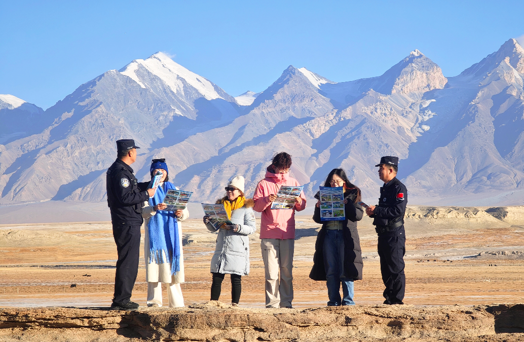 11月18日,新疆木吉邊境派出所民警深入轄區(qū)旅游景點“火山口景區(qū)”內(nèi)開展巡邏走訪、服務群眾等工作。其間,民警向游客介紹景區(qū)特色和注意事項,并通過發(fā)放宣傳手冊等形式向游客介紹關(guān)于陸地邊界的法律法規(guī)、防范電信網(wǎng)絡詐騙等知識,進一步提高游客在邊境游玩時的防范意識,全面護航景區(qū)平安,助力駐地旅游經(jīng)濟發(fā)展。