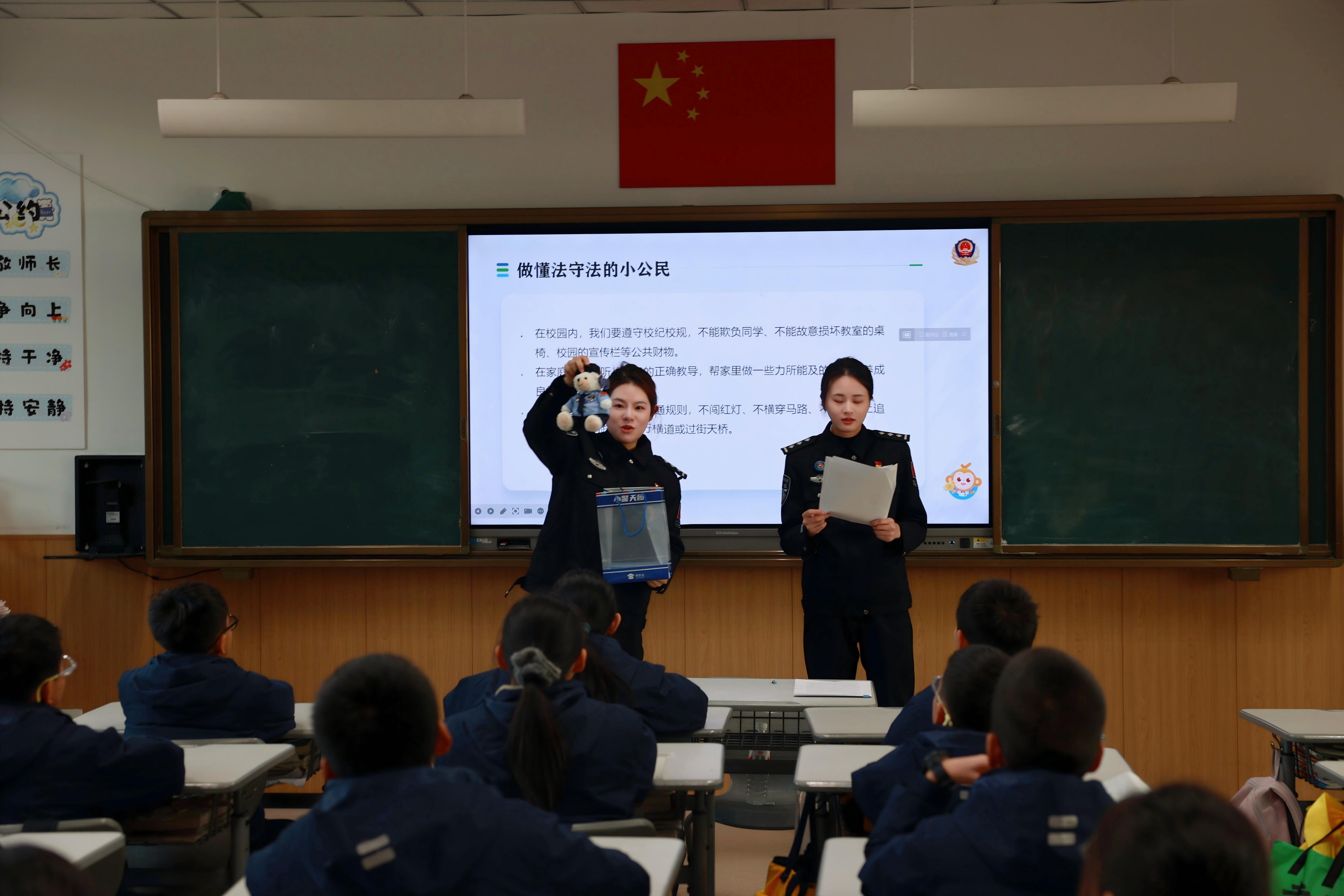 活動中,民警通過趣味問答、卡通圖示等互動方式,帶領(lǐng)同學們“認識人民警察”。通過通俗易懂的語言和貼近生活的例子,介紹了不同警種的職責使命及110報警實用技巧,在孩子們心中播下了信任與尊重的種子。此外,針對校園欺凌等熱點問題,民警圍繞未成年人保護法、治安管理處罰法等法律法規(guī),結(jié)合真實案例,拆解肢體欺凌、語言欺凌、網(wǎng)絡(luò)欺凌等常見形式,傳授“及時報告、勇敢說不、護住要害”的自我保護方法,引導孩子們樹立知法、懂法、守法意識,學會運用法律武器維護自身權(quán)益。