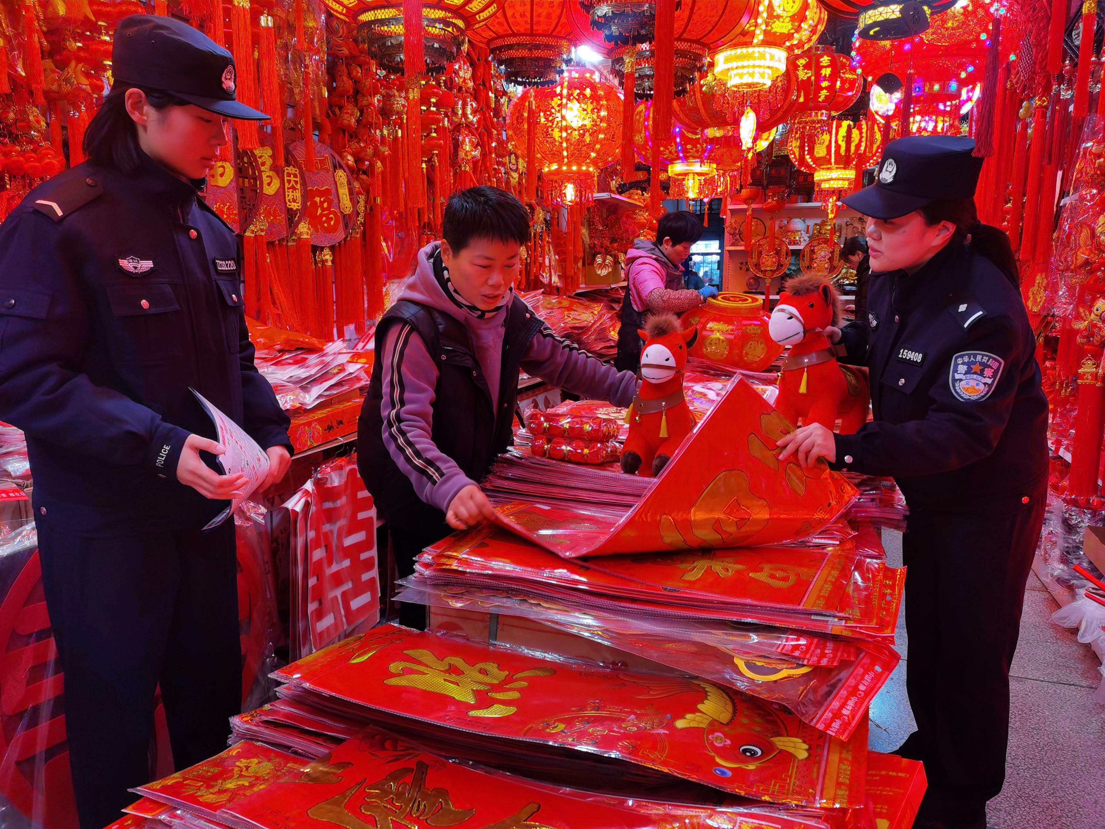 新春佳節(jié)臨近,浙江省東陽(yáng)市公安局南市派出所結(jié)合“冬季攻堅(jiān)行動(dòng)”,民警勤訪年貨市場(chǎng)護(hù)安寧。