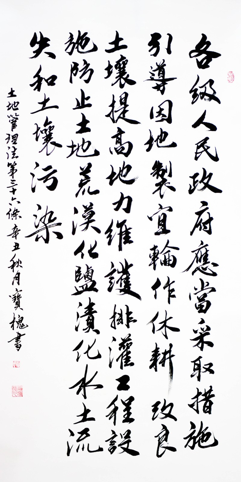繼1600余位書法家參與書寫《中華人民共和國民法典》全部1260條法條之后,法治日報社聯(lián)合自然資源部法規(guī)司、自然資源部書畫研究會和北京昌平書法家協(xié)會,將筆端對準土地管理“一法一條例”,即《中華人民共和國土地管理法》和《中華人民共和國土地管理法實施條例》。
