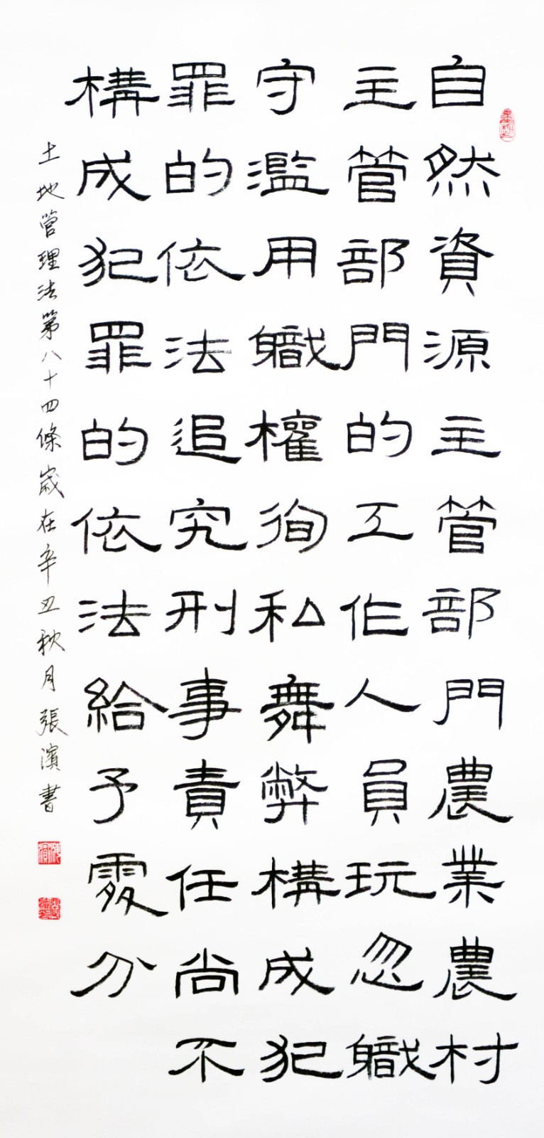 繼1600余位書法家參與書寫《中華人民共和國民法典》全部1260條法條之后,法治日報社聯(lián)合自然資源部法規(guī)司、自然資源部書畫研究會和北京昌平書法家協(xié)會,將筆端對準(zhǔn)土地管理“一法一條例”,即《中華人民共和國土地管理法》和《中華人民共和國土地管理法實(shí)施條例》。