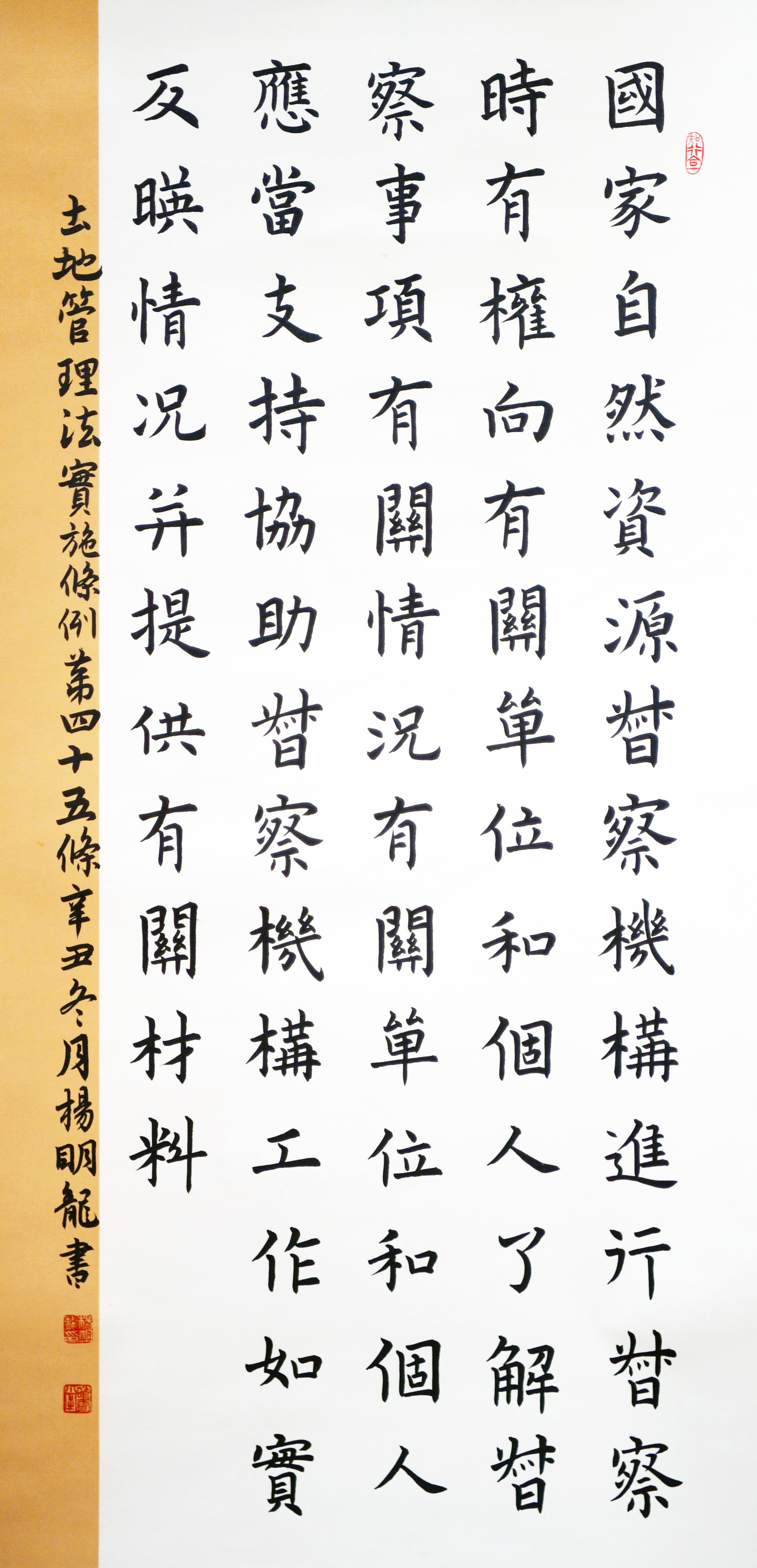繼1600余位書法家參與書寫《中華人民共和國民法典》全部1260條法條之后,法治日報社聯(lián)合自然資源部法規(guī)司、自然資源部書畫研究會和北京昌平書法家協(xié)會,將筆端對準土地管理“一法一條例”,即《中華人民共和國土地管理法》和《中華人民共和國土地管理法實施條例》。