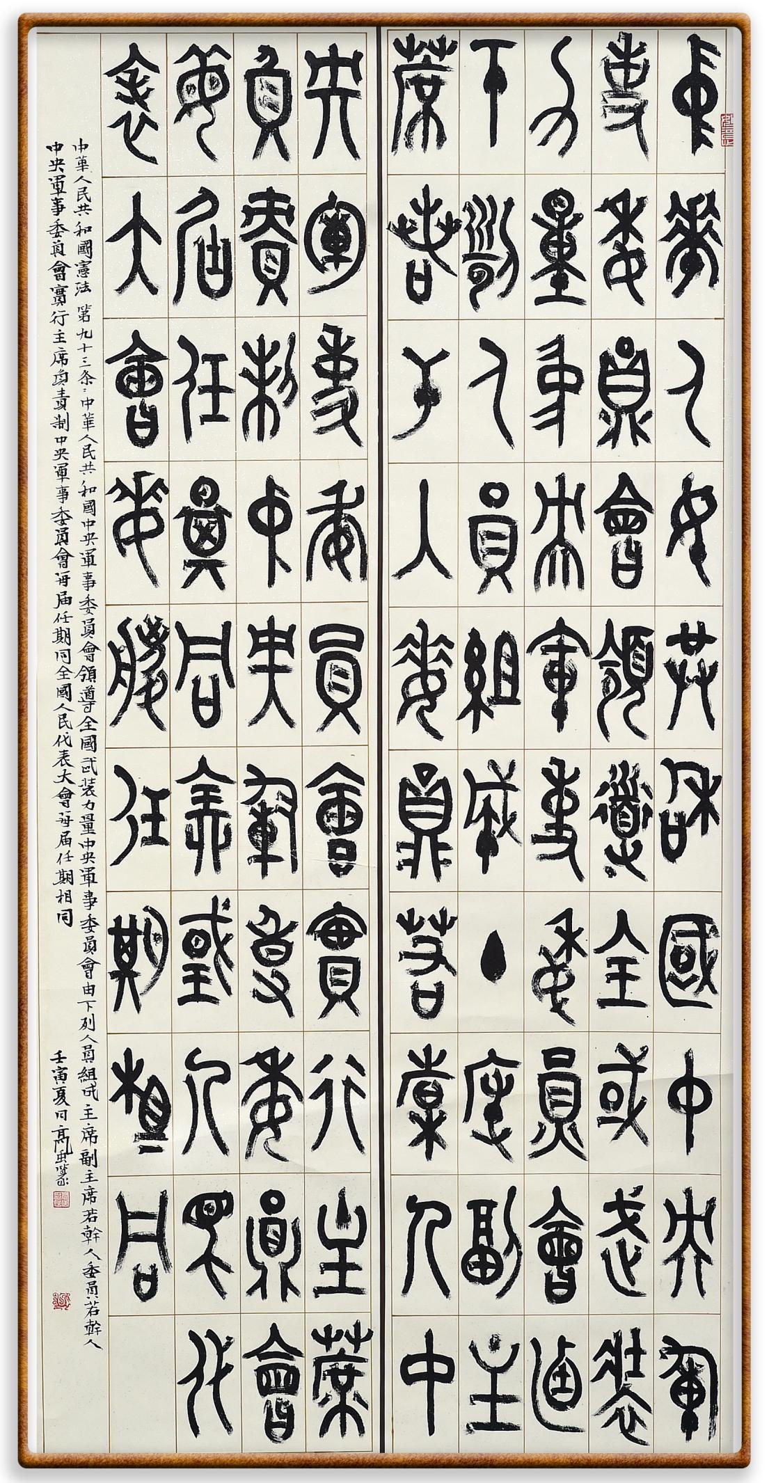 繼《中華人民共和國民法典》《中華人民共和國土地管理法》《中華人民共和國土地管理法實施條例》《中華人民共和國法律援助法》之后,法治日報社聯(lián)合北京市司法局、北京書法家協(xié)會,將筆端對準《中華人民共和國憲法》和《中華人民共和國行政處罰法》。