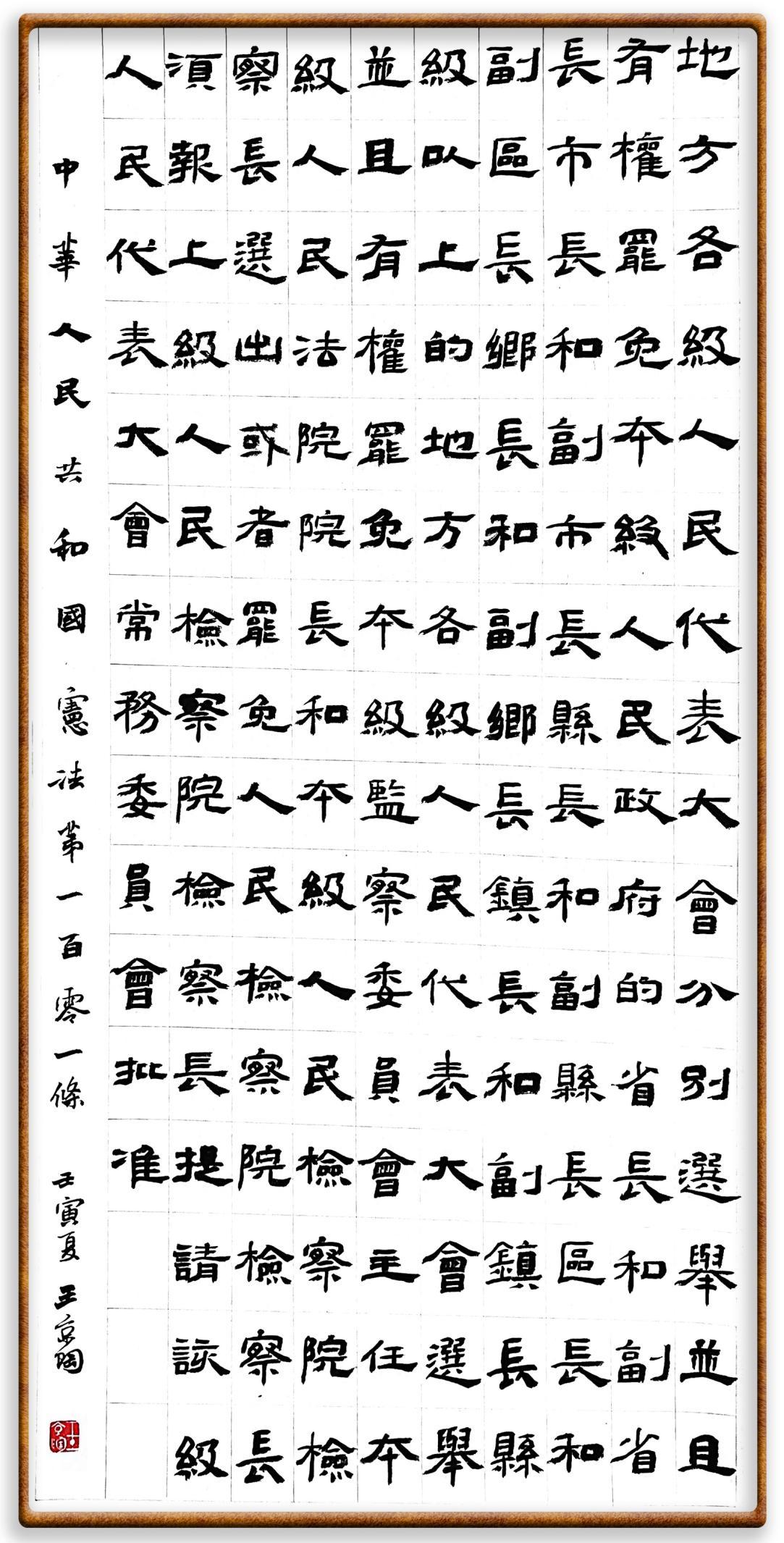 繼《中華人民共和國民法典》《中華人民共和國土地管理法》《中華人民共和國土地管理法實(shí)施條例》《中華人民共和國法律援助法》之后,法治日?qǐng)?bào)社聯(lián)合北京市司法局、北京書法家協(xié)會(huì),將筆端對(duì)準(zhǔn)《中華人民共和國憲法》和《中華人民共和國行政處罰法》。