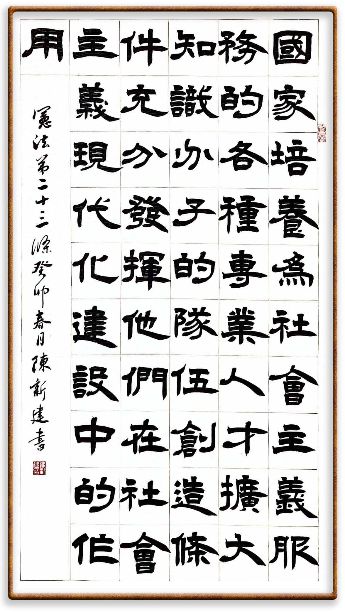 繼《中華人民共和國(guó)民法典》《中華人民共和國(guó)土地管理法》《中華人民共和國(guó)土地管理法實(shí)施條例》《中華人民共和國(guó)法律援助法》之后,法治日?qǐng)?bào)社聯(lián)合北京市司法局、北京書(shū)法家協(xié)會(huì),將筆端對(duì)準(zhǔn)《中華人民共和國(guó)憲法》和《中華人民共和國(guó)行政處罰法》。