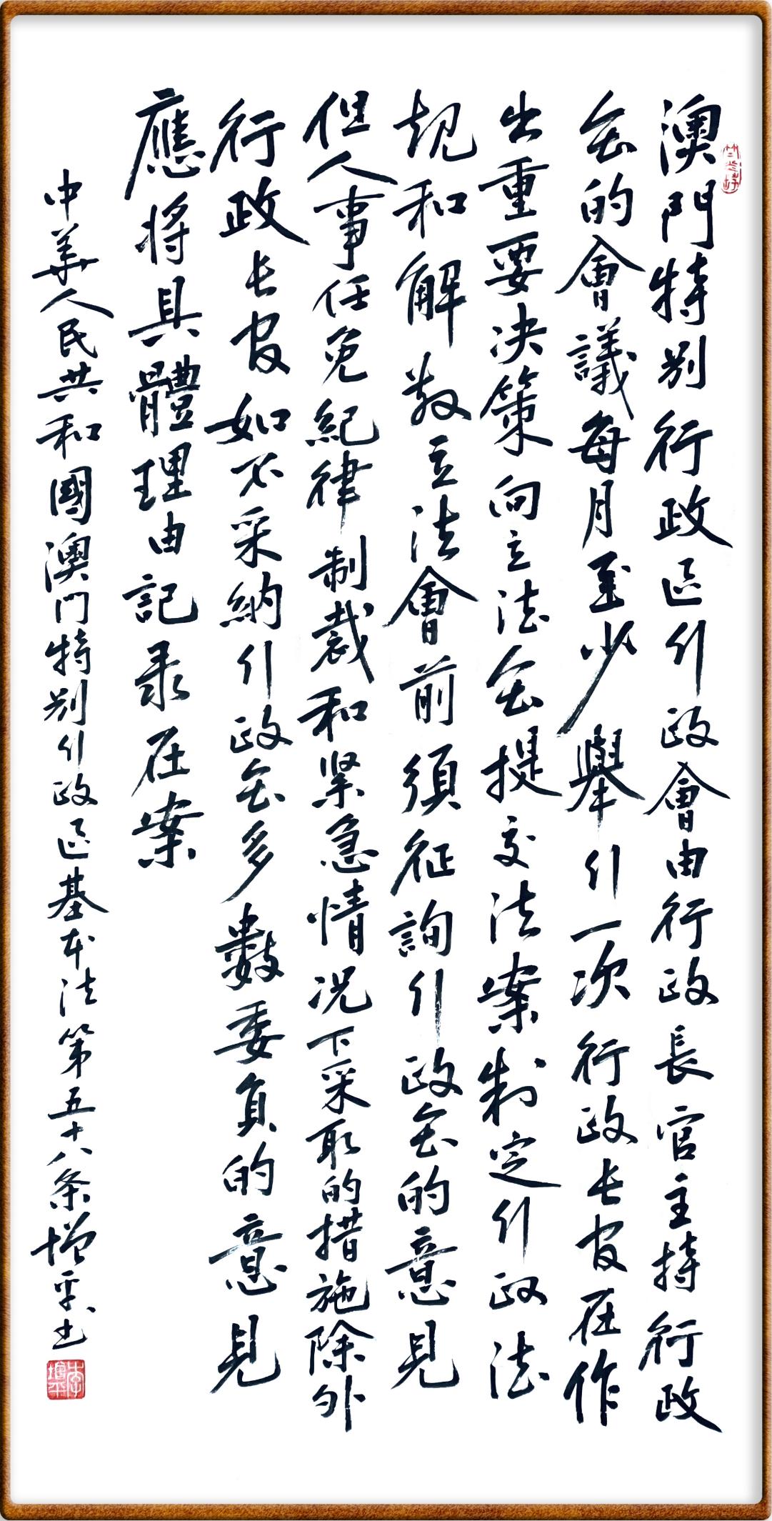 澳門基本法第五十八條 澳門特別行政區(qū)行政會由行政長官主持。行政會的會議每月至少舉行一次。行政長官在作出重要決策、向立法會提交法案、制定行政法規(guī)和解散立法會前,須征詢行政會的意見,但人事任免、紀(jì)律制裁和緊急情況下采取的措施除外。