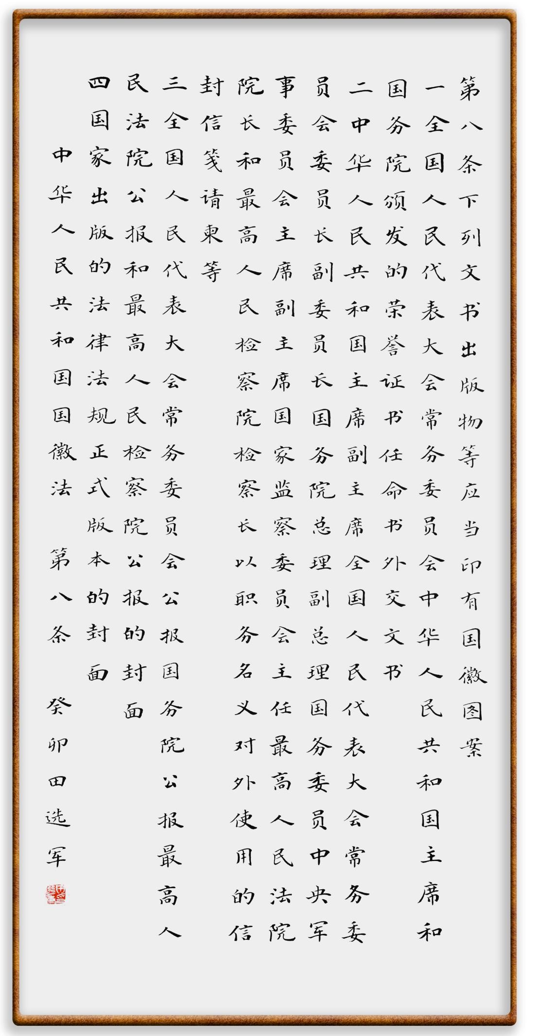 國徽法第八條 下列文書、出版物等應(yīng)當(dāng)印有國徽圖案: