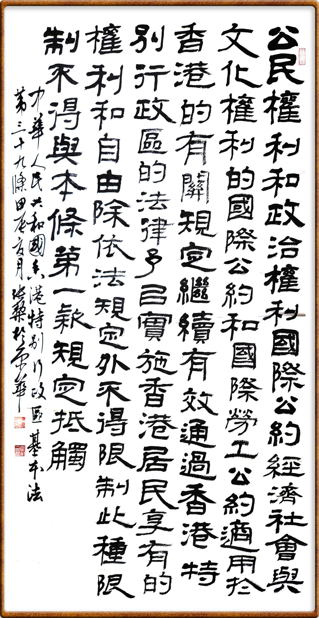 香港基本法第三十九條 《公民權(quán)利和政治權(quán)利國際公約》、《經(jīng)濟、社會與文化權(quán)利的國際公約》和國際勞工公約適用于香港的有關(guān)規(guī)定繼續(xù)有效,通過香港特別行政區(qū)的法律予以實施。