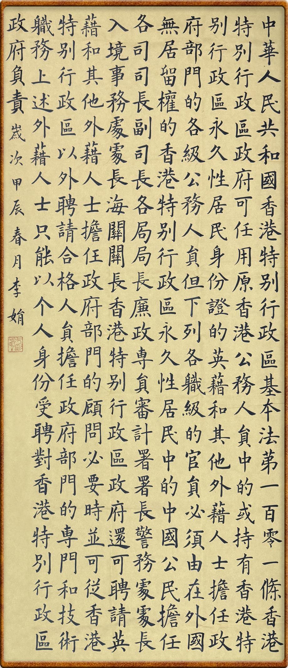 香港基本法第一百零一條 香港特別行政區(qū)政府可任用原香港公務(wù)人員中的或持有香港特別行政區(qū)永久性居民身份證的英籍和其他外籍人士擔(dān)任政府部門(mén)的各級(jí)公務(wù)人員,但下列各職級(jí)的官員必須由在外國(guó)無(wú)居留權(quán)的香港特別行政區(qū)永久性居民中的中國(guó)公民擔(dān)任:各司司長(zhǎng)、副司長(zhǎng),各局局長(zhǎng),廉政專員,審計(jì)署署長(zhǎng),警務(wù)處處長(zhǎng),入境事務(wù)處處長(zhǎng),海關(guān)關(guān)長(zhǎng)。