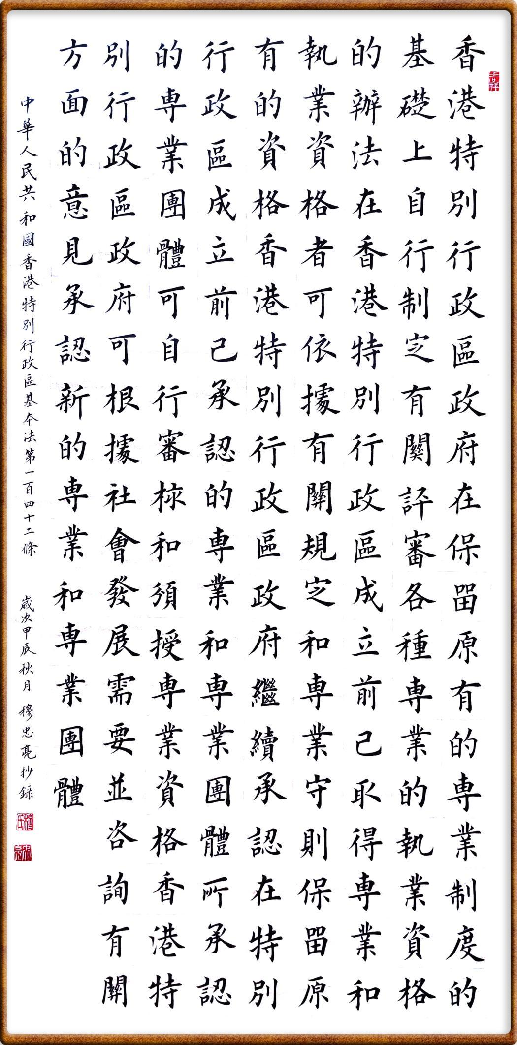 書(shū)·法|穆忠亮:香港基本法第一百四十二條