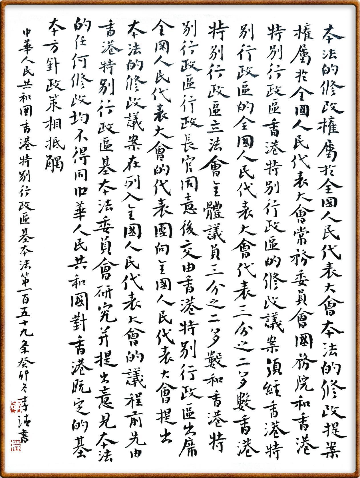 香港基本法第一百五十九條 本法的修改權(quán)屬于全國人民代表大會。