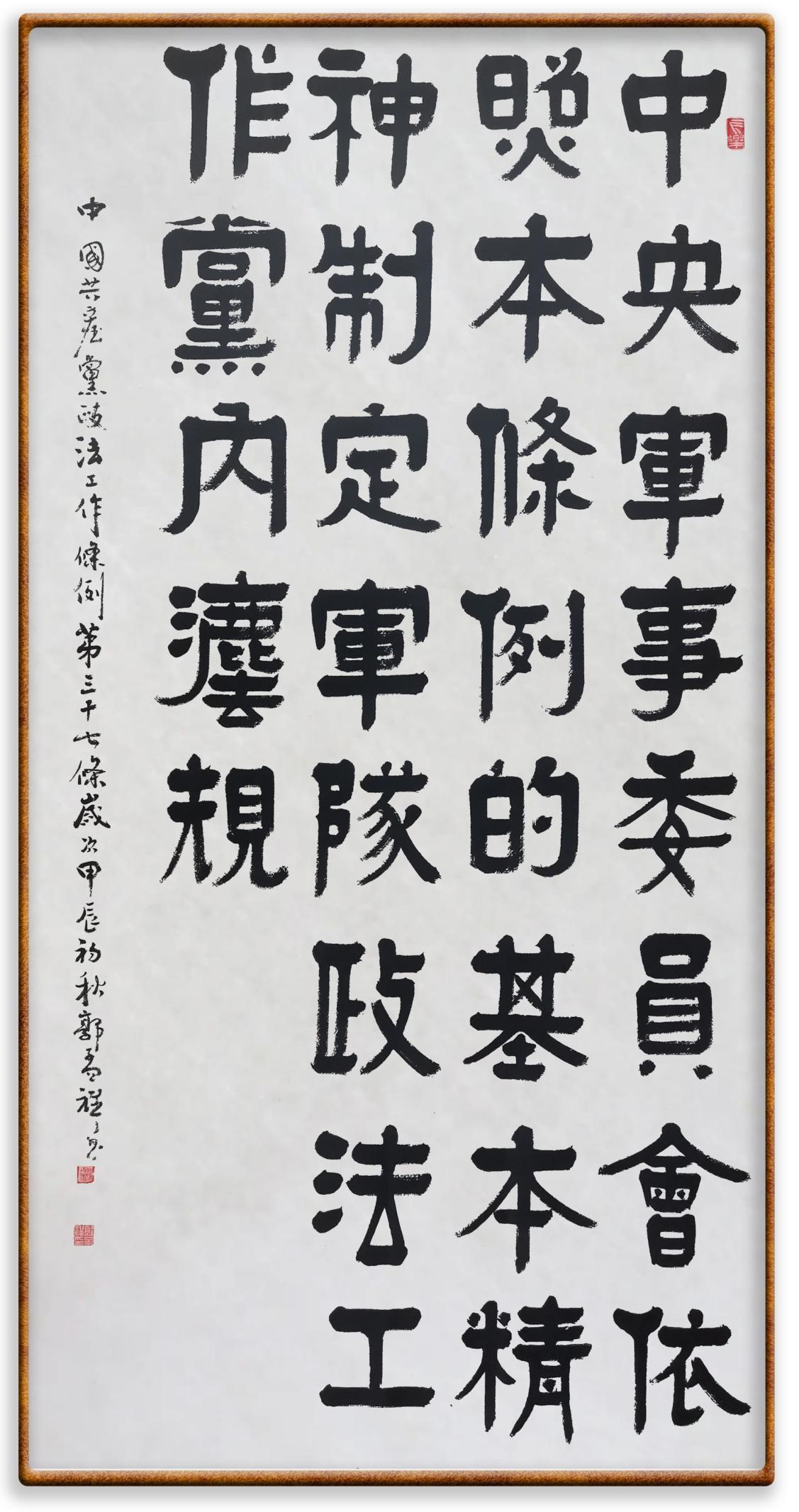 《中國共產(chǎn)黨政法工作條例》對黨領(lǐng)導(dǎo)新時代政法工作進行全面制度擘畫,為黨領(lǐng)導(dǎo)政法工作提供基本遵循,具有重大而深遠(yuǎn)的意義。為學(xué)習(xí)好、宣傳好、貫徹好、實施好這部黨內(nèi)法規(guī),繼《中華人民共和國民法典》《中華人民共和國憲法》《信訪工作條例》《中華人民共和國澳門特別行政區(qū)基本法》《中華人民共和國香港特別行政區(qū)基本法》等法律法規(guī)之后,“書·法”系列活動將筆端對準(zhǔn)《中國共產(chǎn)黨政法工作條例》。