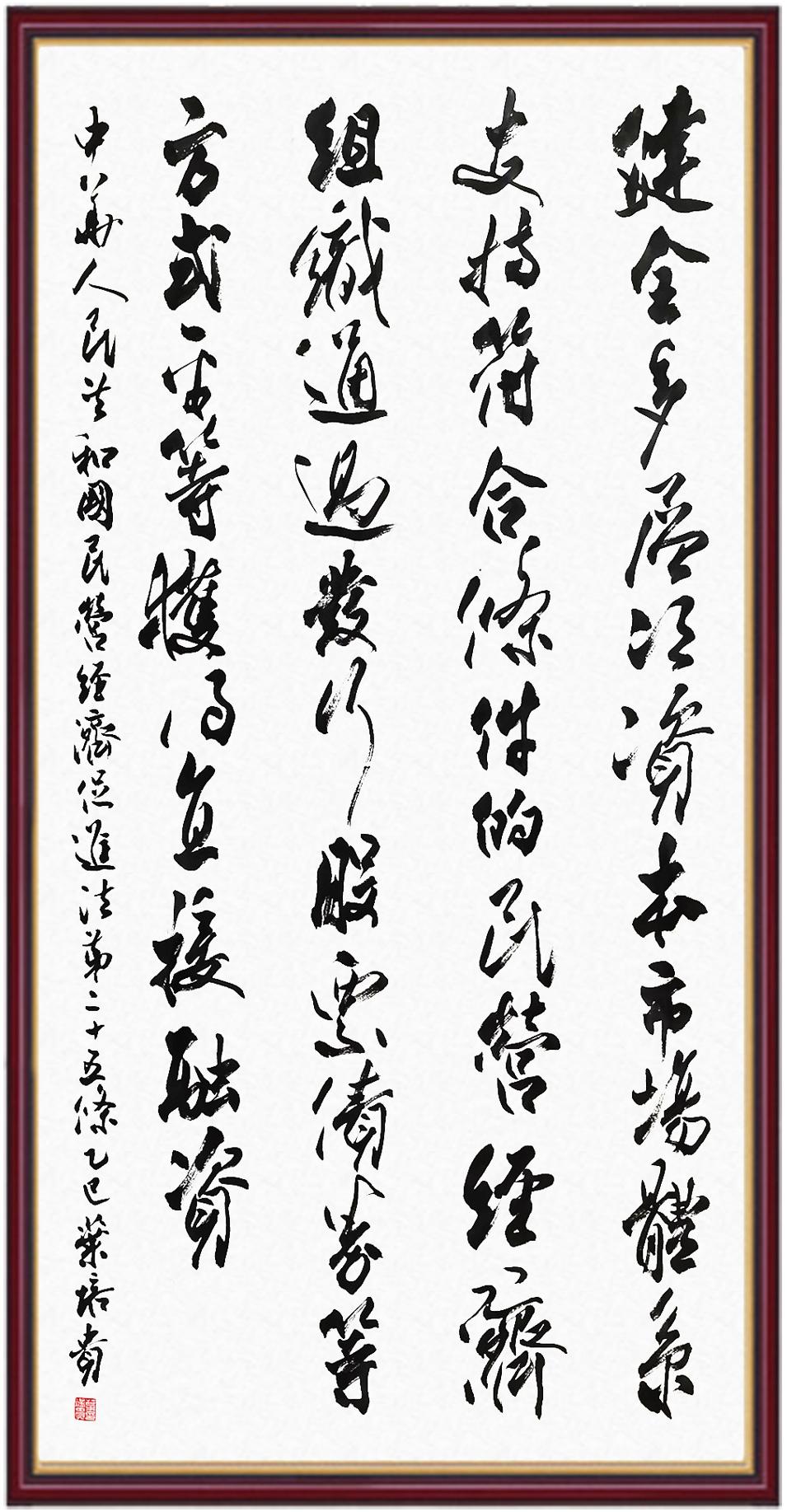 《中華人民共和國民營經(jīng)濟(jì)促進(jìn)法》自今年5月20日起施行。作為我國首部專門關(guān)于民營經(jīng)濟(jì)發(fā)展的基礎(chǔ)性法律,民營經(jīng)濟(jì)促進(jìn)法將支持和保障民營經(jīng)濟(jì)發(fā)展的法律制度融入中國特色社會主義法律體系,具有重大的法治意義,為促進(jìn)民營經(jīng)濟(jì)持續(xù)、健康、高質(zhì)量發(fā)展提供了堅實(shí)的法治保障。為更好地學(xué)習(xí)、宣傳、貫徹這部法律,法治日報社聯(lián)合司法部普法與依法治理局,開展“‘書·法’系列活動之書寫《中華人民共和國民營經(jīng)濟(jì)促進(jìn)法》”活動。