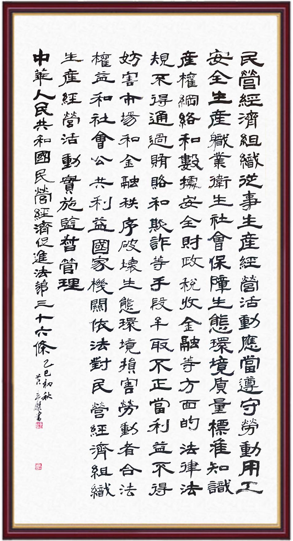 《中華人民共和國民營經濟促進法》自今年5月20日起施行。作為我國首部專門關于民營經濟發(fā)展的基礎性法律,民營經濟促進法將支持和保障民營經濟發(fā)展的法律制度融入中國特色社會主義法律體系,具有重大的法治意義,為促進民營經濟持續(xù)、健康、高質量發(fā)展提供了堅實的法治保障。為更好地學習、宣傳、貫徹這部法律,法治日報社聯(lián)合司法部普法與依法治理局,開展“‘書·法’系列活動之書寫《中華人民共和國民營經濟促進法》”活動。