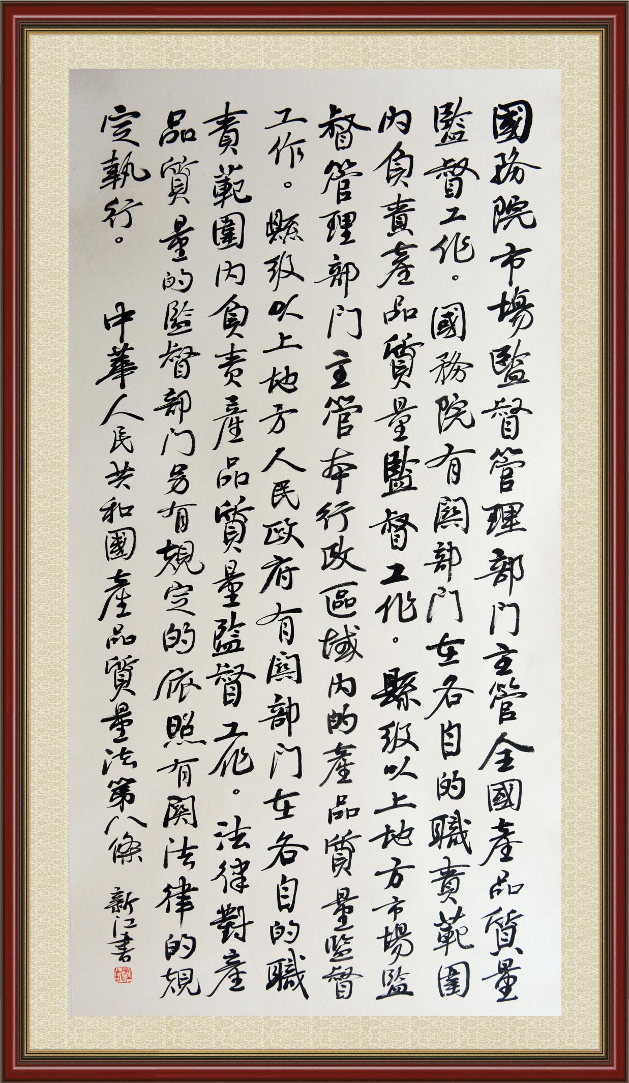《中華人民共和國產(chǎn)品質(zhì)量法》自1993年9月1日起開始施行,先后進(jìn)行三次修正。作為產(chǎn)品質(zhì)量領(lǐng)域的基本法律,產(chǎn)品質(zhì)量法對(duì)規(guī)范產(chǎn)品質(zhì)量管理、維護(hù)消費(fèi)者合法權(quán)益、促進(jìn)經(jīng)濟(jì)社會(huì)發(fā)展具有重要意義。為更好地學(xué)習(xí)、宣傳、貫徹這部法律,在國家市場監(jiān)督管理總局法規(guī)司的支持下,法治日?qǐng)?bào)社開展了“‘書·法’系列活動(dòng)之書寫《中華人民共和國產(chǎn)品質(zhì)量法》”活動(dòng)。