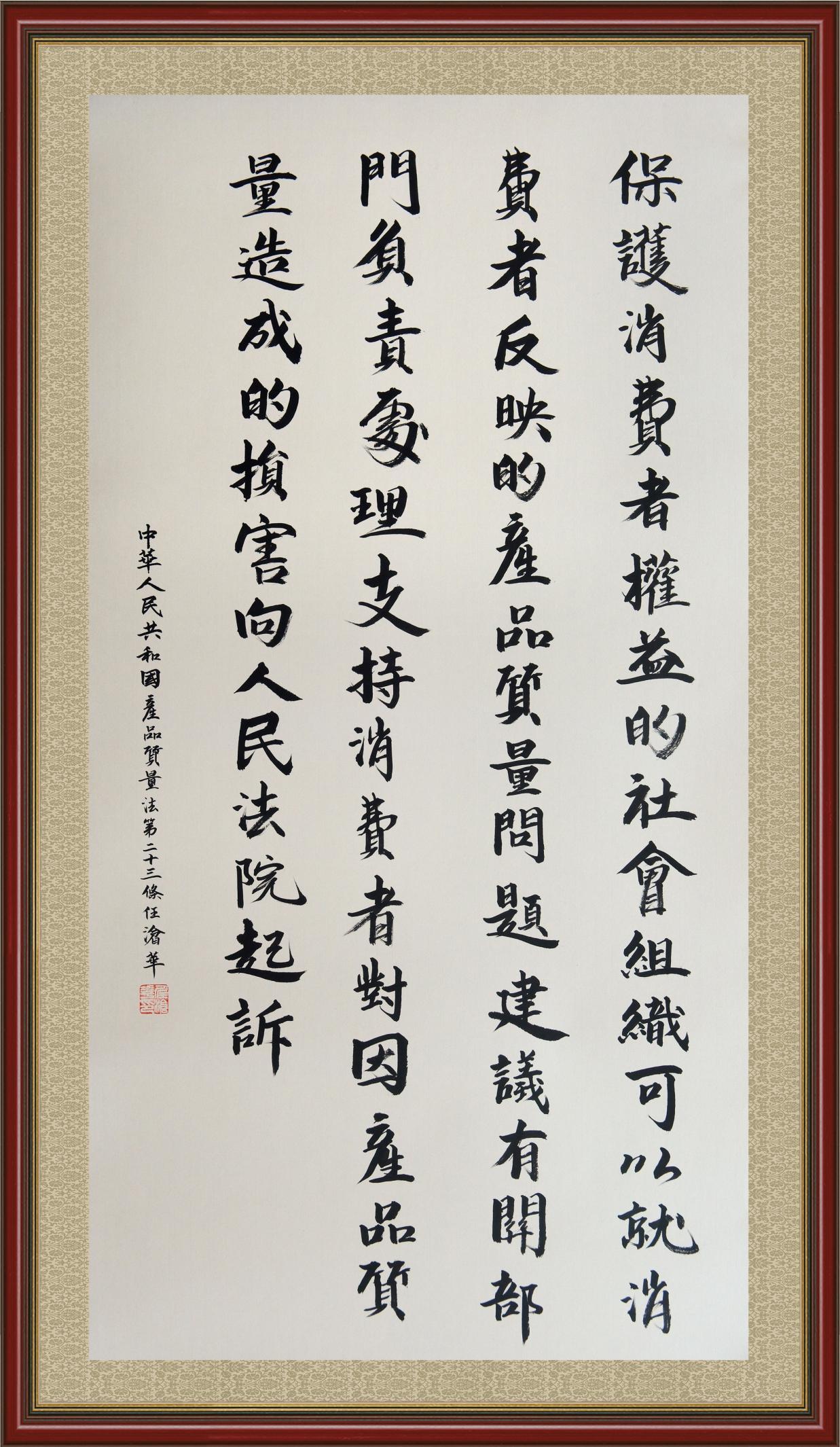 《中華人民共和國(guó)產(chǎn)品質(zhì)量法》自1993年9月1日起開始施行,先后進(jìn)行三次修正。作為產(chǎn)品質(zhì)量領(lǐng)域的基本法律,產(chǎn)品質(zhì)量法對(duì)規(guī)范產(chǎn)品質(zhì)量管理、維護(hù)消費(fèi)者合法權(quán)益、促進(jìn)經(jīng)濟(jì)社會(huì)發(fā)展具有重要意義。為更好地學(xué)習(xí)、宣傳、貫徹這部法律,在國(guó)家市場(chǎng)監(jiān)督管理總局法規(guī)司的支持下,法治日?qǐng)?bào)社開展了“‘書·法’系列活動(dòng)之書寫《中華人民共和國(guó)產(chǎn)品質(zhì)量法》”活動(dòng)。