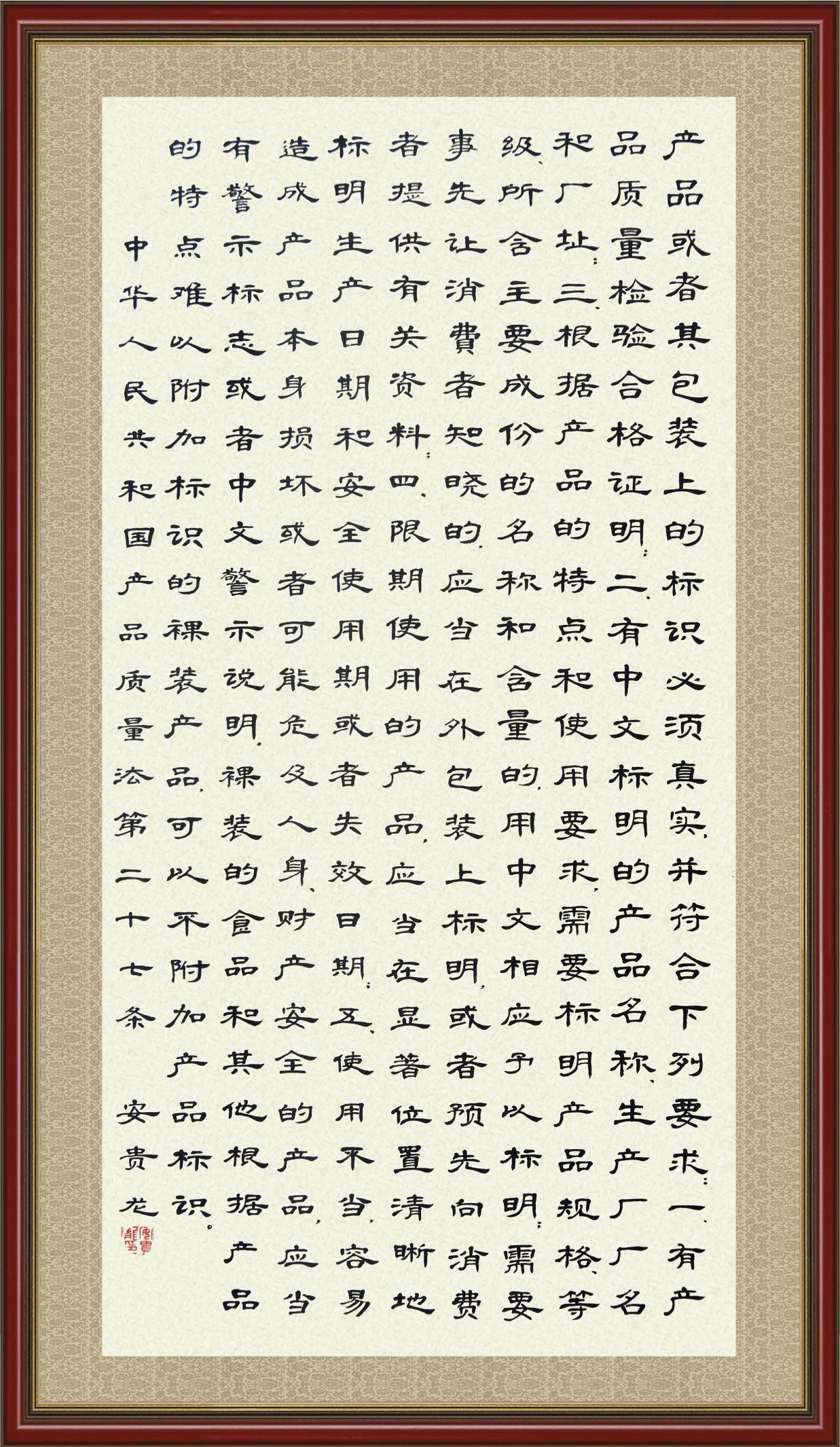 《中華人民共和國(guó)產(chǎn)品質(zhì)量法》自1993年9月1日起開始施行,先后進(jìn)行三次修正。作為產(chǎn)品質(zhì)量領(lǐng)域的基本法律,產(chǎn)品質(zhì)量法對(duì)規(guī)范產(chǎn)品質(zhì)量管理、維護(hù)消費(fèi)者合法權(quán)益、促進(jìn)經(jīng)濟(jì)社會(huì)發(fā)展具有重要意義。為更好地學(xué)習(xí)、宣傳、貫徹這部法律,在國(guó)家市場(chǎng)監(jiān)督管理總局法規(guī)司的支持下,法治日?qǐng)?bào)社開展了“‘書·法’系列活動(dòng)之書寫《中華人民共和國(guó)產(chǎn)品質(zhì)量法》”活動(dòng)。