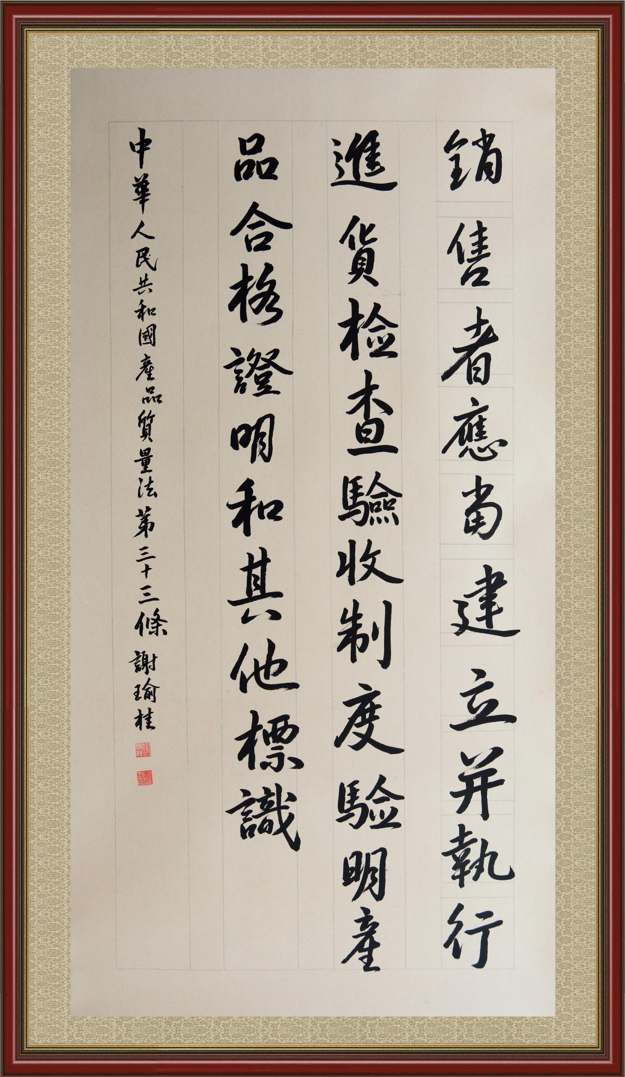 《中華人民共和國產(chǎn)品質(zhì)量法》自1993年9月1日起開始施行,先后進行三次修正。作為產(chǎn)品質(zhì)量領(lǐng)域的基本法律,產(chǎn)品質(zhì)量法對規(guī)范產(chǎn)品質(zhì)量管理、維護消費者合法權(quán)益、促進經(jīng)濟社會發(fā)展具有重要意義。為更好地學習、宣傳、貫徹這部法律,在國家市場監(jiān)督管理總局法規(guī)司的支持下,法治日報社開展了“‘書·法’系列活動之書寫《中華人民共和國產(chǎn)品質(zhì)量法》”活動。