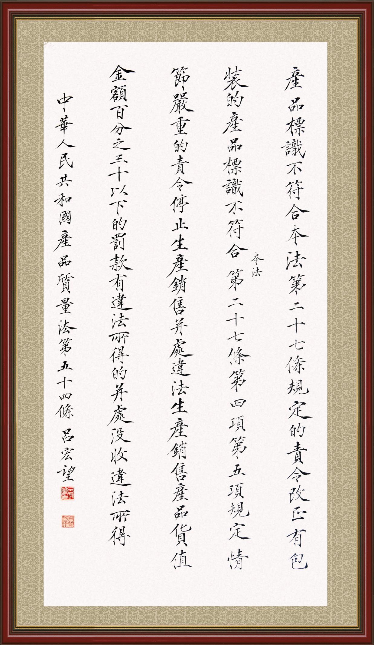 《中華人民共和國產(chǎn)品質(zhì)量法》自1993年9月1日起開始施行,先后進行三次修正。作為產(chǎn)品質(zhì)量領(lǐng)域的基本法律,產(chǎn)品質(zhì)量法對規(guī)范產(chǎn)品質(zhì)量管理、維護消費者合法權(quán)益、促進經(jīng)濟社會發(fā)展具有重要意義。為更好地學(xué)習(xí)、宣傳、貫徹這部法律,在國家市場監(jiān)督管理總局法規(guī)司的支持下,法治日報社開展了“‘書·法’系列活動之書寫《中華人民共和國產(chǎn)品質(zhì)量法》”活動。