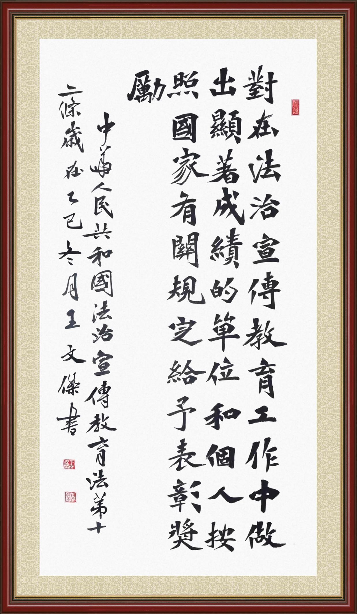 《中華人民共和國法治宣傳教育法》自2025年11月1日起開始施行。法治宣傳教育是全面依法治國的長期基礎(chǔ)性工作。法治宣傳教育法對提升全民法治素養(yǎng)和社會(huì)治理法治化水平、推動(dòng)建設(shè)更高水平的社會(huì)主義法治國家具有重要意義。為更好地學(xué)習(xí)、宣傳、貫徹這部法律,法治日報(bào)社聯(lián)合司法部普法與依法治理局,開展了“‘書·法’系列活動(dòng)之書寫《中華人民共和國法治宣傳教育法》”活動(dòng)。