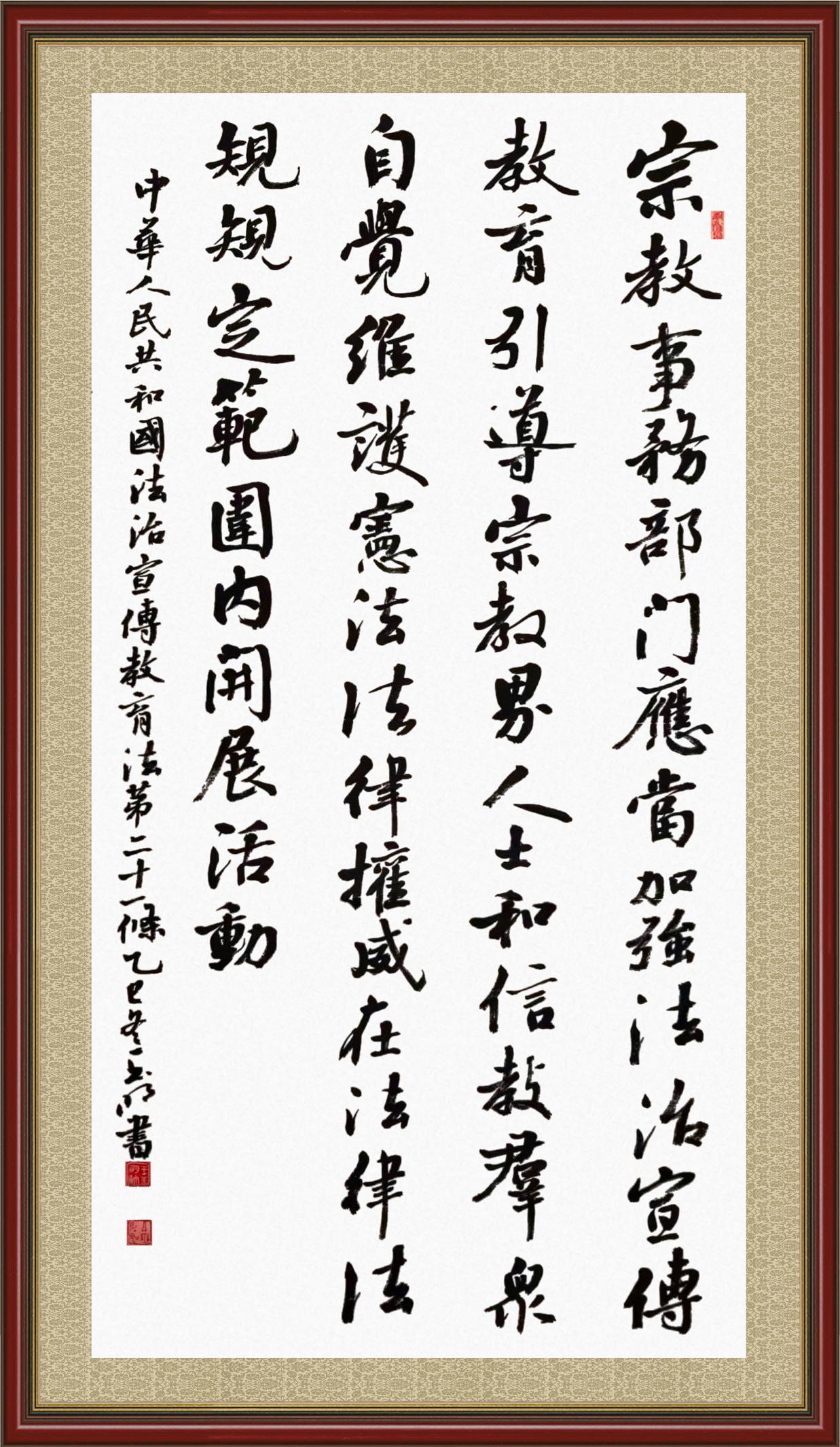 2020年7月11日,由法治日?qǐng)?bào)社主辦的“書(shū)·法”系列活動(dòng)正式啟動(dòng),先后書(shū)寫(xiě)《中華人民共和國(guó)民法典》《中華人民共和國(guó)憲法》《中華人民共和國(guó)民營(yíng)經(jīng)濟(jì)促進(jìn)法》等21部法律法規(guī)。