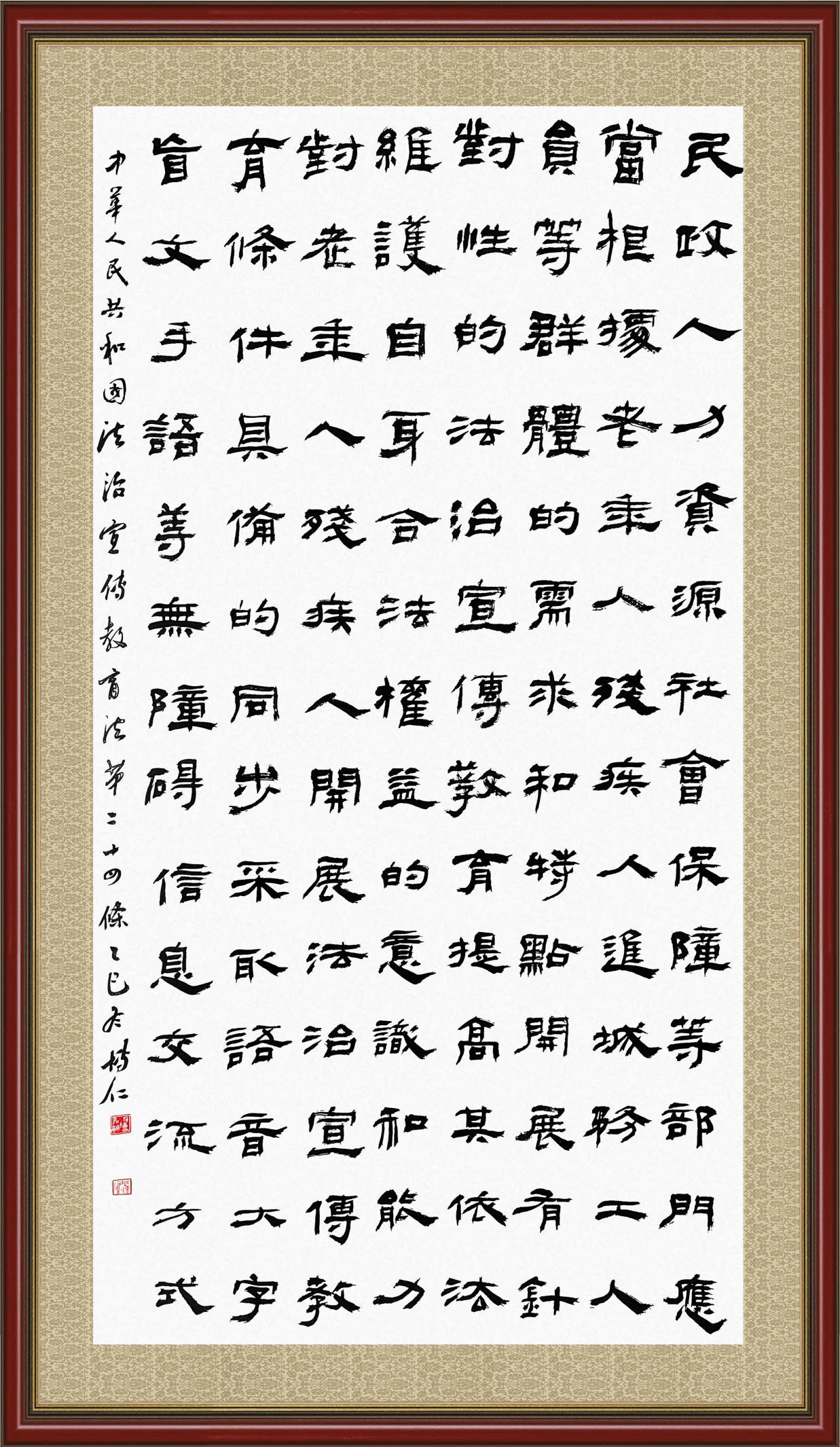 2020年7月11日,由法治日?qǐng)?bào)社主辦的“書(shū)·法”系列活動(dòng)正式啟動(dòng),先后書(shū)寫(xiě)《中華人民共和國(guó)民法典》《中華人民共和國(guó)憲法》《中華人民共和國(guó)民營(yíng)經(jīng)濟(jì)促進(jìn)法》等21部法律法規(guī)。