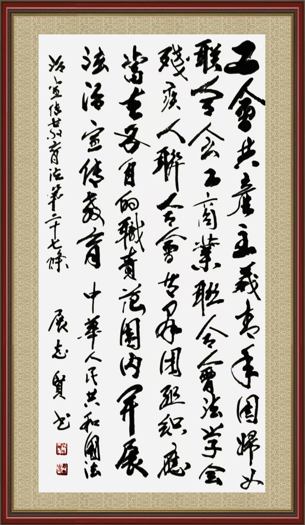 2020年7月11日,由法治日?qǐng)?bào)社主辦的“書(shū)·法”系列活動(dòng)正式啟動(dòng),先后書(shū)寫(xiě)《中華人民共和國(guó)民法典》《中華人民共和國(guó)憲法》《中華人民共和國(guó)民營(yíng)經(jīng)濟(jì)促進(jìn)法》等21部法律法規(guī)。