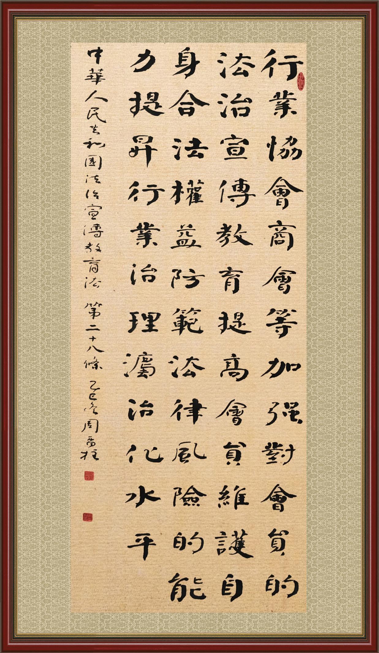 2020年7月11日,由法治日?qǐng)?bào)社主辦的“書·法”系列活動(dòng)正式啟動(dòng),先后書寫《中華人民共和國(guó)民法典》《中華人民共和國(guó)憲法》《中華人民共和國(guó)民營(yíng)經(jīng)濟(jì)促進(jìn)法》等21部法律法規(guī)。