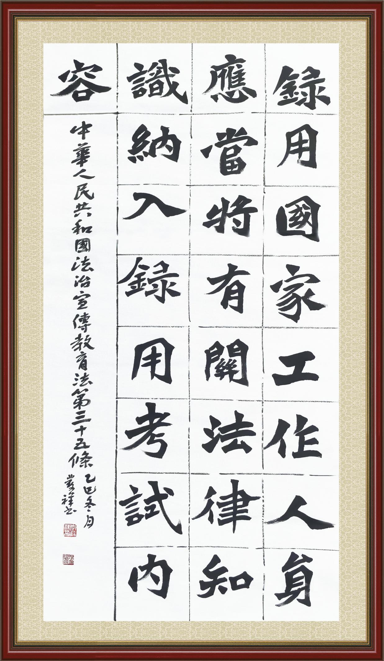 2020年7月11日,由法治日?qǐng)?bào)社主辦的“書(shū)·法”系列活動(dòng)正式啟動(dòng),先后書(shū)寫(xiě)《中華人民共和國(guó)民法典》《中華人民共和國(guó)憲法》《中華人民共和國(guó)民營(yíng)經(jīng)濟(jì)促進(jìn)法》等21部法律法規(guī)。