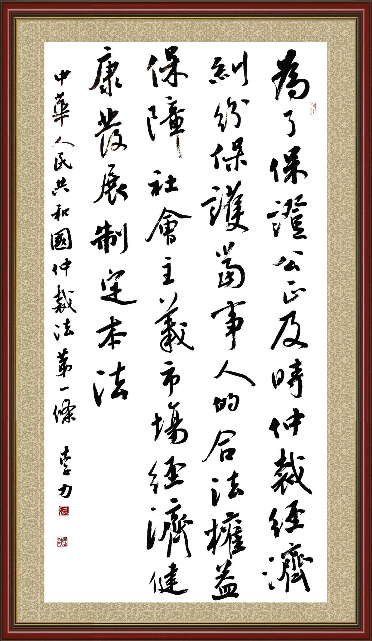 2020年7月11日,由法治日?qǐng)?bào)社主辦的“書(shū)·法”系列活動(dòng)正式啟動(dòng),先后書(shū)寫(xiě)《中華人民共和國(guó)民法典》《中華人民共和國(guó)憲法》《中華人民共和國(guó)法治宣傳教育法》等22部法律法規(guī)。
