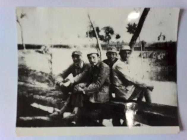 1947年秋人民解放軍大反攻,新華社華東前線分社記者(父親位于右一)隨大軍渡過黃河南下中原時攝于黃河岸上。
