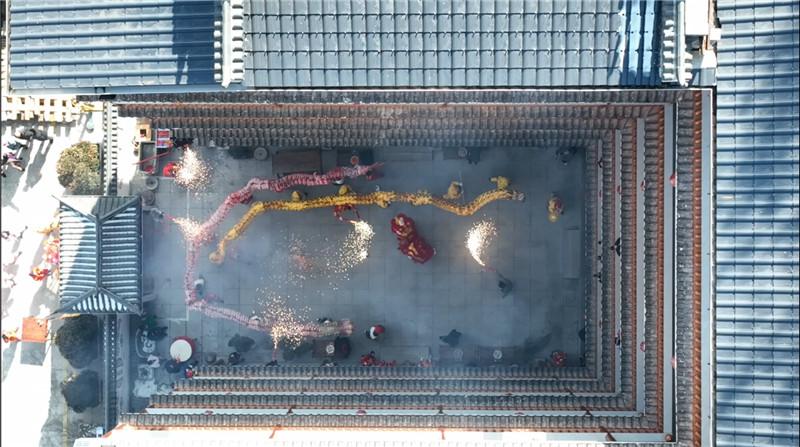四十多位非遺傳承人舞起“火龍”和獅子,把祝福送到村民家中。侯康攝