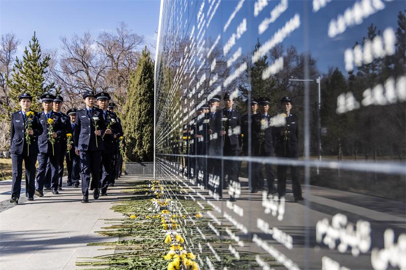 3月30日,烏魯木齊鐵路公安局烏魯木齊公安處在烏魯木齊市烈士陵園,舉行“緬懷公安英烈 無悔藏藍青春”清明緬懷公安英烈活動。在新疆公安英烈紀念園里,民警們面向新疆公安英烈紀念墻,神情凝重,脫帽肅立,低首默哀,表達對新疆公安英烈無盡的緬懷和崇高的敬意。參加活動人員依次向英烈敬獻鮮花,瞻仰英烈墻,重溫英烈事跡,感悟英烈精神。