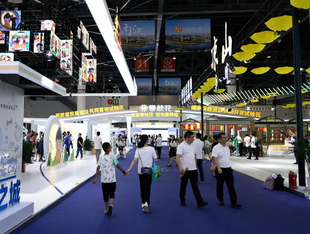 這是6月29日拍攝的第十九屆中國西部國際博覽會四川“五區(qū)共興”館。新華社記者 胥冰潔 攝