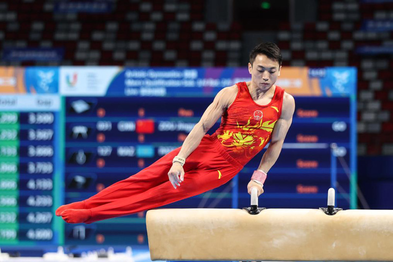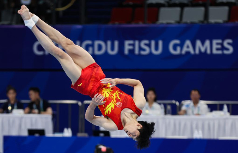 新華社成都8月2日電(記者譚暢、朱青)成都大運會體操項目2日進入第二個比賽日,由張博恒、鄒敬園、蘇煒德、蘭星宇、侍聰組成的中國隊以262.594分獲得男子團體冠軍。