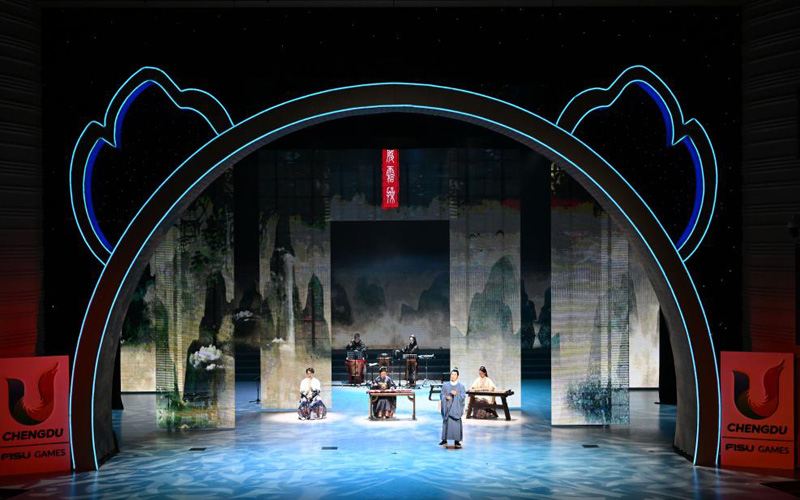 8月1日,“大音希聲”古琴音樂晚會在成都大運村藝術中心大劇場舉行,來自成都古琴文化學會和梓又雅樂團的演奏者為觀眾帶來精彩表演。本場活動是在大運村舉辦的“Be Together”主題系列晚會之一。新華社記者 蔡湘鑫 攝