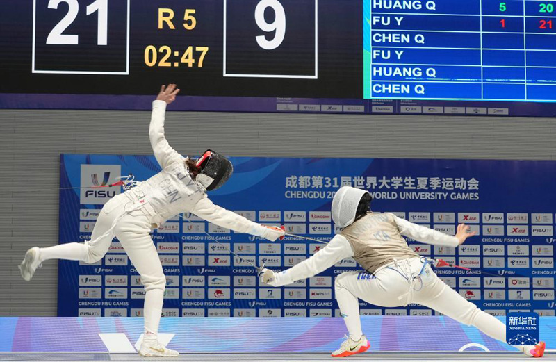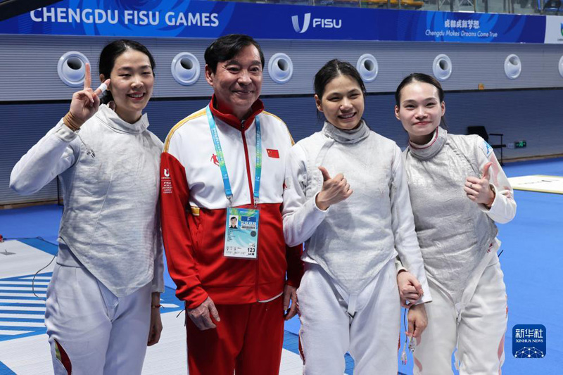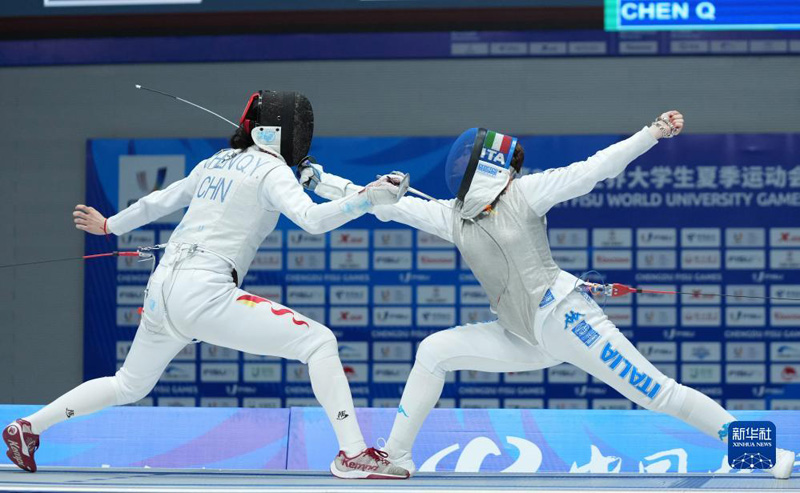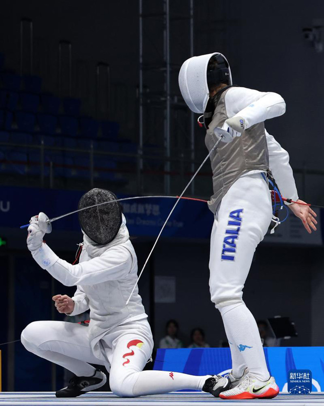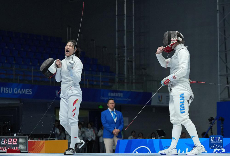 當(dāng)日,在成都舉行的第31屆世界大學(xué)生夏季運動會擊劍女子花劍團體金牌賽中,中國隊以45比22戰(zhàn)勝意大利隊,獲得金牌。