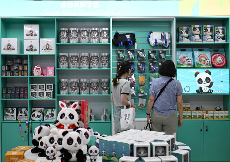 7月18日,市民在成都市一家大運(yùn)會(huì)特許商品零售店內(nèi)選購(gòu)。新華社記者 胥冰潔 攝