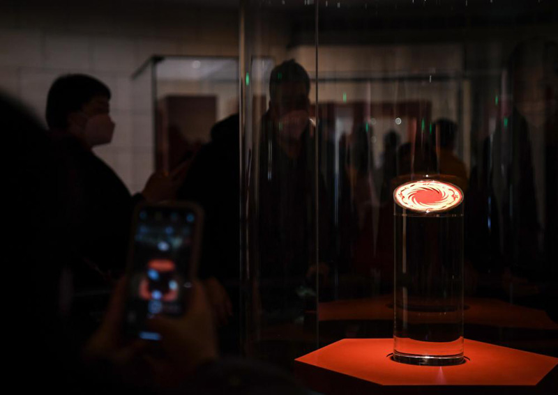 觀眾在位于四川成都的金沙遺址博物館參觀太陽(yáng)神鳥金飾。新華社記者 王曦 攝