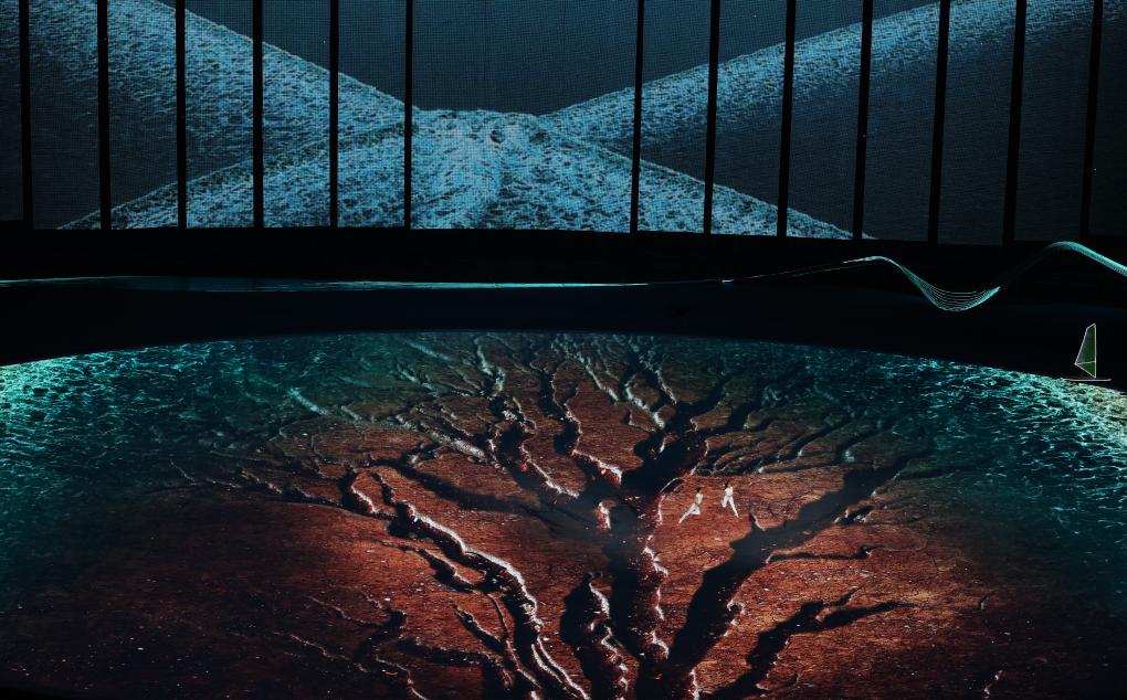 裸眼3D、AR數(shù)字穹頂、3D雙威亞、流體計(jì)算和185米寬、15米高的網(wǎng)幕等技術(shù),實(shí)現(xiàn)了立體美學(xué)和東方美學(xué)的融合,也實(shí)現(xiàn)了技術(shù)和藝術(shù)的雙向奔赴。