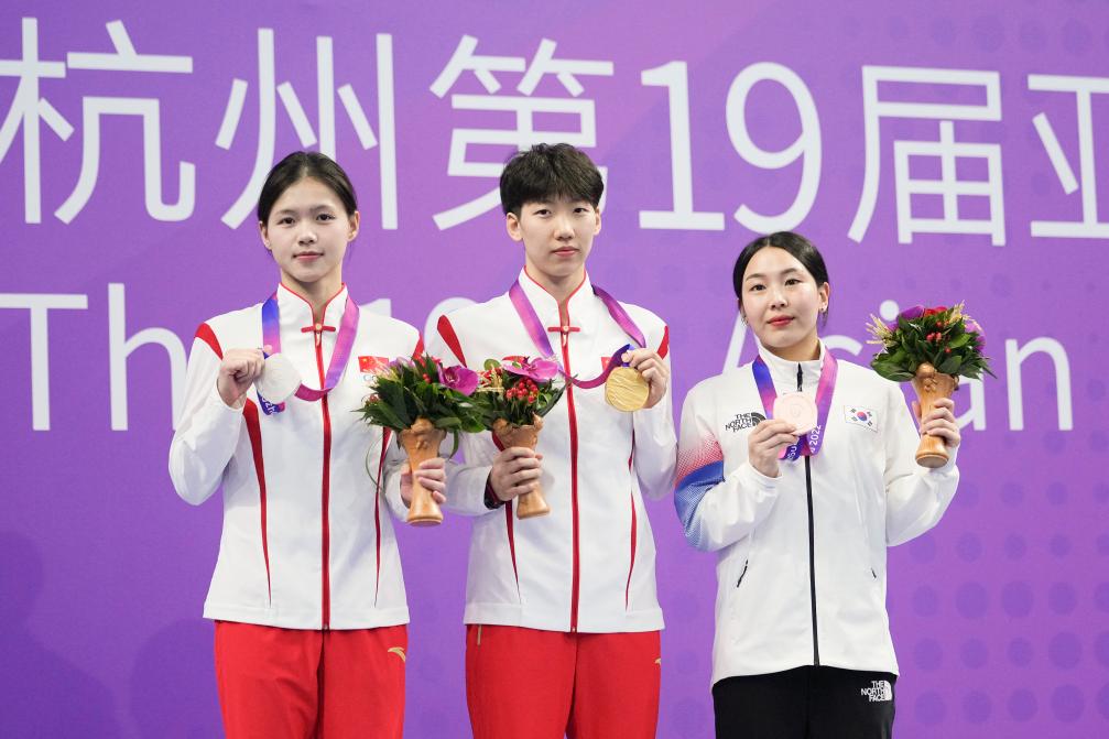 新華社杭州10月2日電(記者夏亮、周欣、李嘉)中國(guó)跳水隊(duì)在本屆亞運(yùn)會(huì)上的“金牌收割”仍在繼續(xù)。在2日進(jìn)行的男、女1米板決賽中,中國(guó)隊(duì)分別包攬冠亞軍。