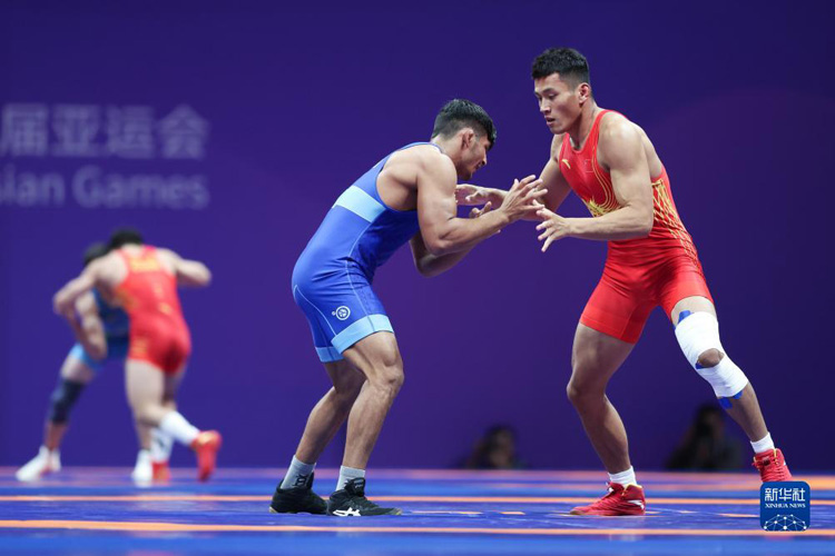 當日,在杭州亞運會摔跤項目男子古典式77公斤級四分之一決賽中,中國選手劉瑞戰(zhàn)勝印度選手維卡斯,晉級半決賽。