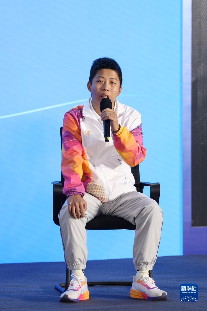10月7日,中國(guó)日?qǐng)?bào)文教體育部、杭州亞運(yùn)英文官方會(huì)刊記者石甫天在見(jiàn)面會(huì)現(xiàn)場(chǎng)發(fā)言。